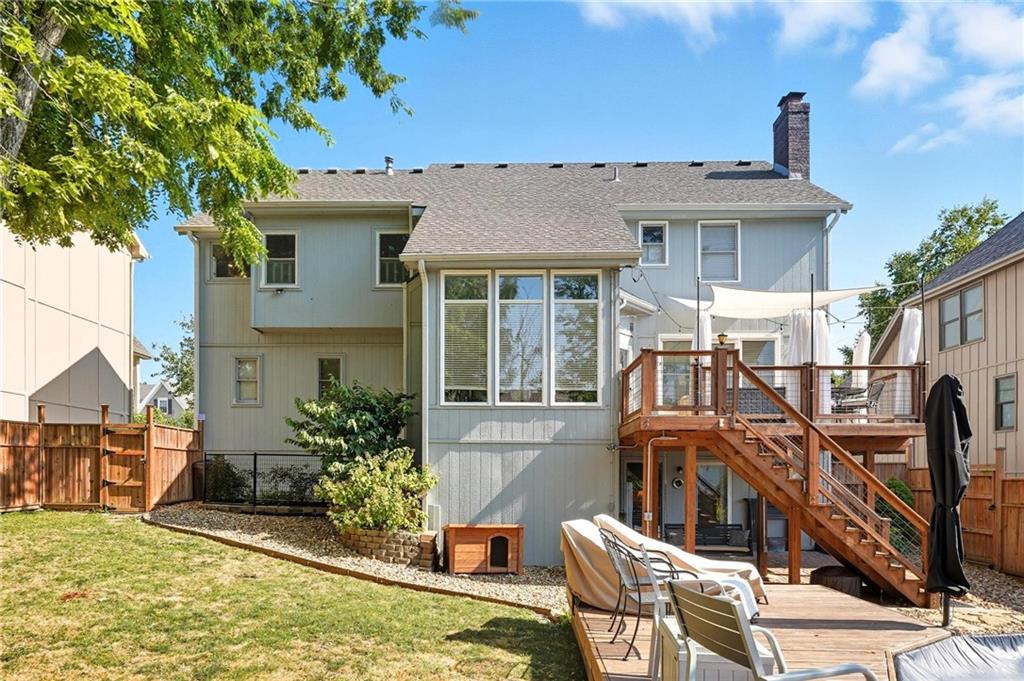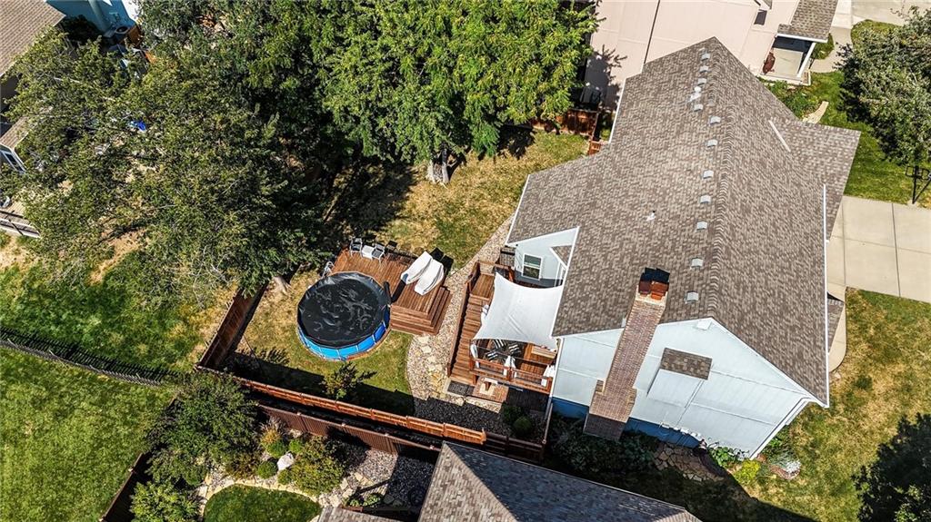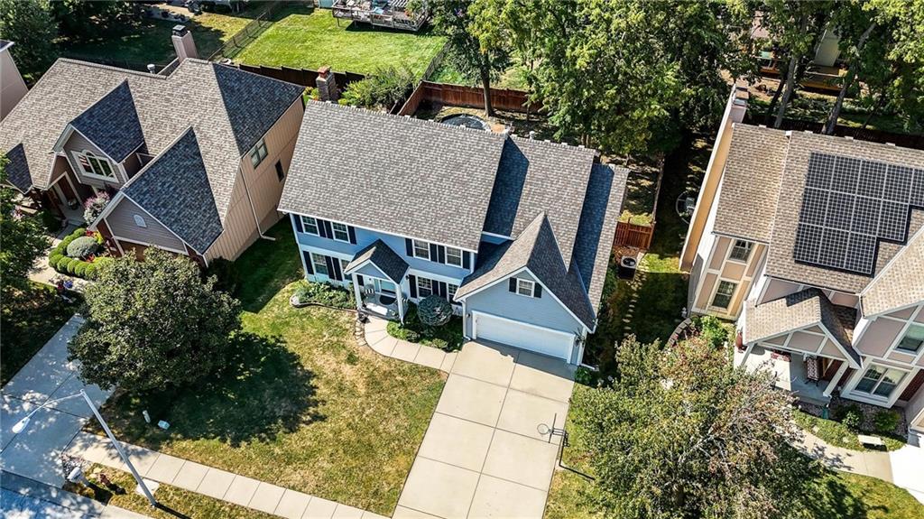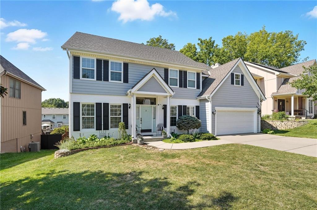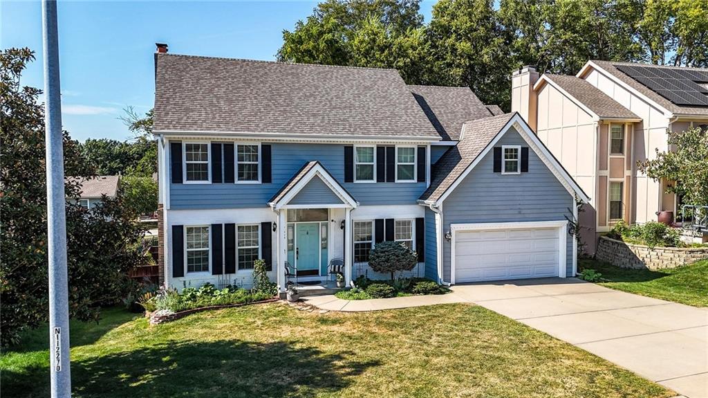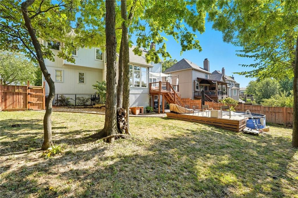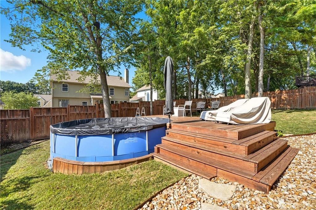 This absolutely beautiful 4 bedroom, 3.1 bathroom home in the Park Hill School District offers comfort, style, and an unbeatable location near Park Hill High, Congress Middle, and Prairie Point Elementary. The main level features warm hardwood floors through the entry, kitchen, family room, and eat-in space, along with a cozy gas fireplace and large picture windows that fill the home with natural light. The kitchen shines with painted cabinets, quartz counters, and plenty of storage including a pantry. Step outside to a newer deck complete with lighting and privacy curtains, overlooking a fenced and landscaped yard with an above-ground pool and additional pool deck. Upstairs, all four bedrooms have walk-in closets and ceiling fans. The primary suite includes a sitting area, walk-in closet, and bath with double vanity, tile shower, separate tub, and cultured marble counters. The partially finished walkout basement adds even more living space with a fireplace, new carpet, full bath, storage, and walkout access to a brick patio. This home blends charm, function, and fun indoor-outdoor living in a fantastic Northland location.