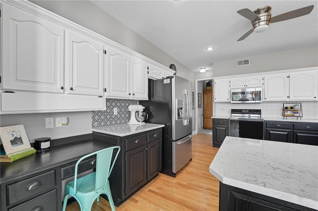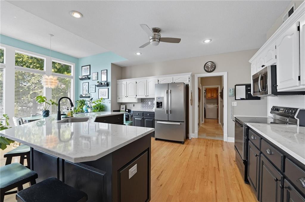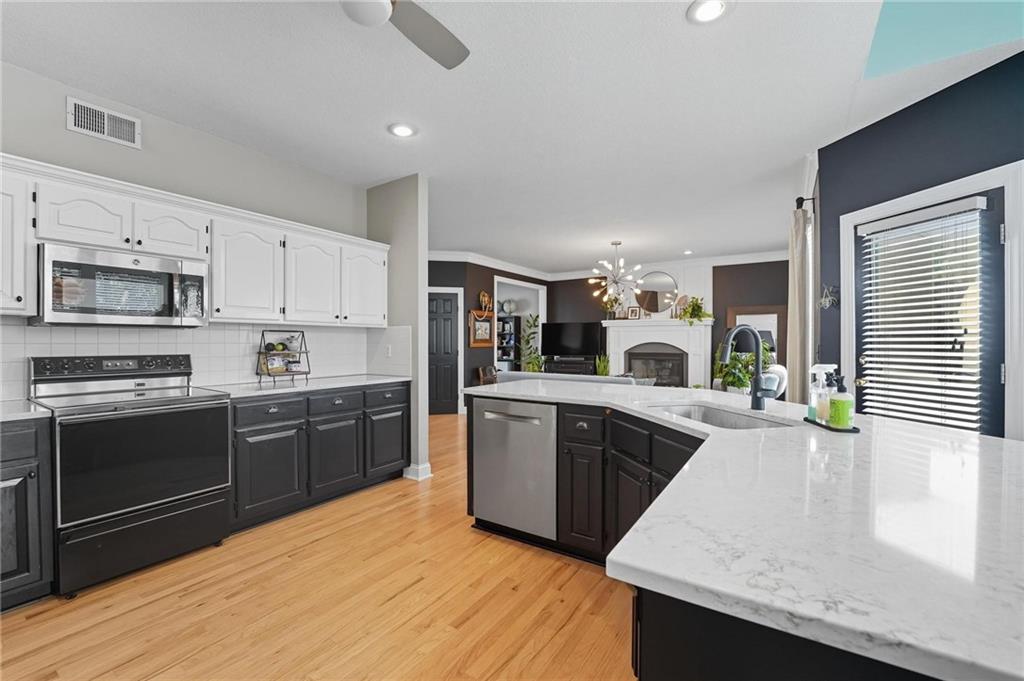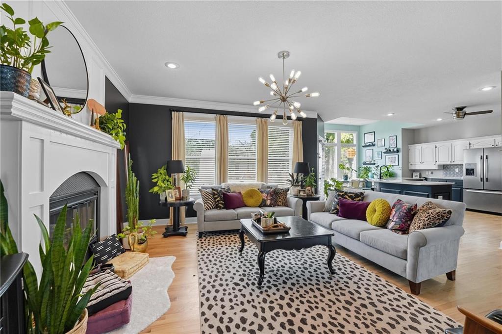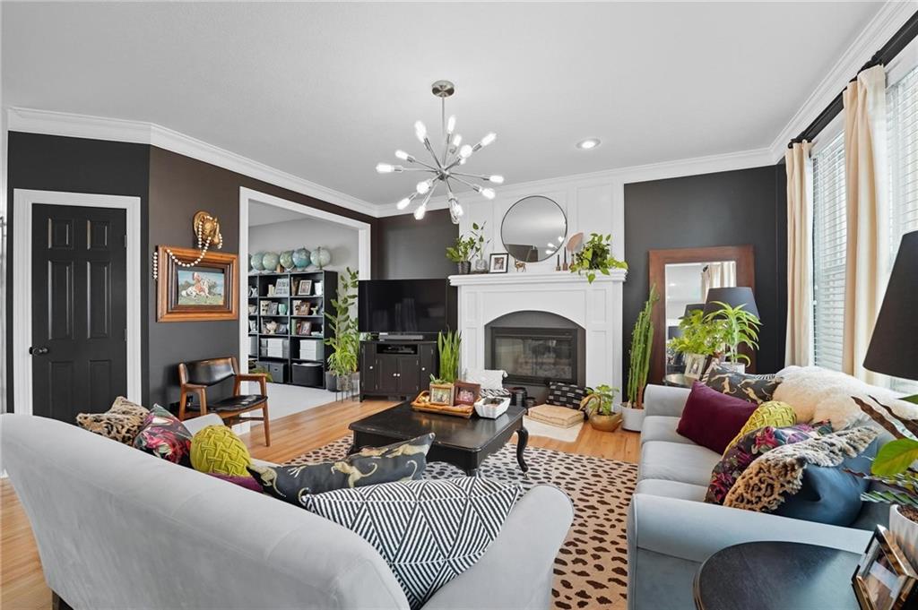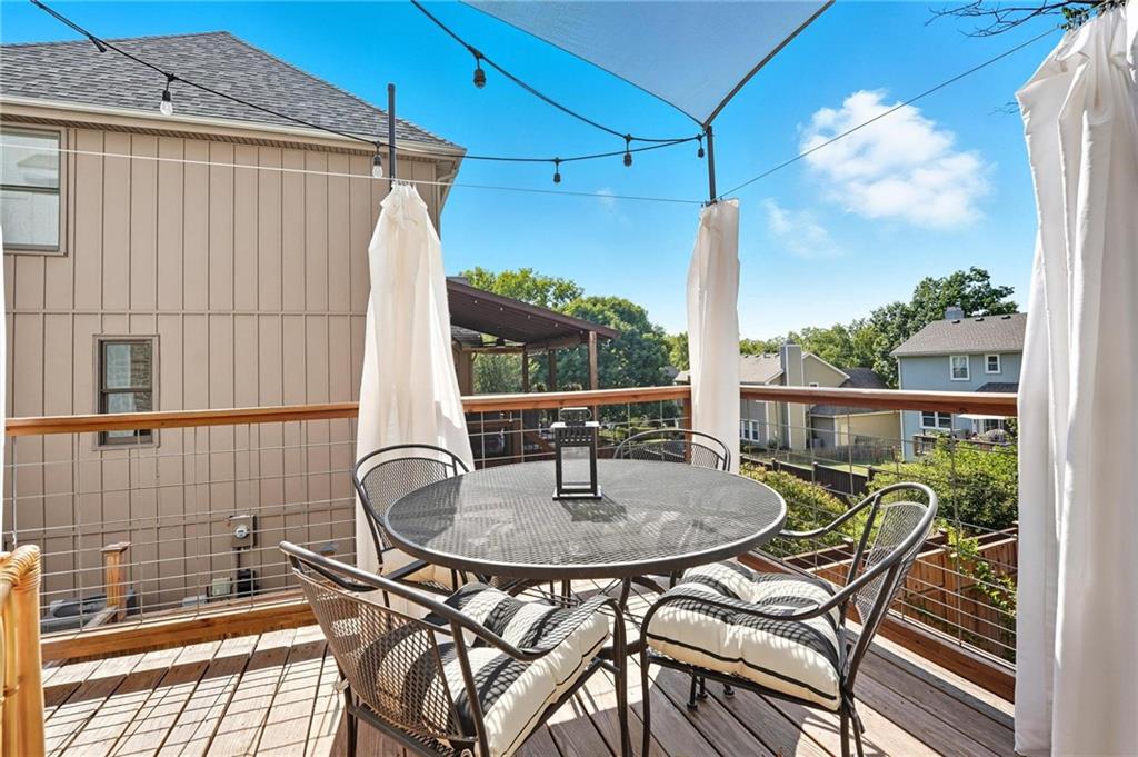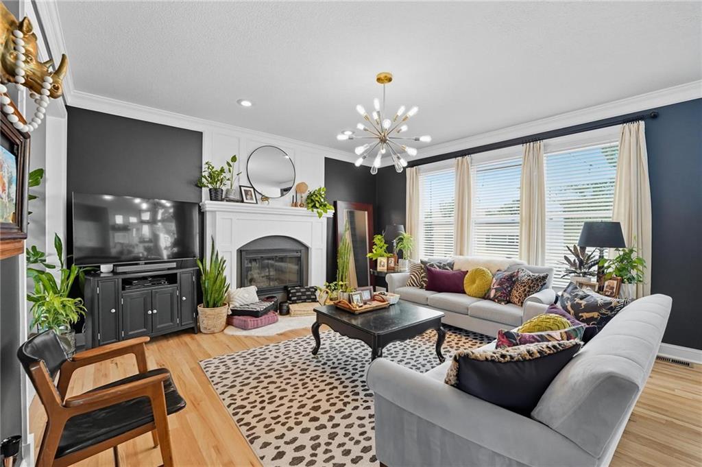 This absolutely beautiful 4 bedroom, 3.1 bathroom home in the Park Hill School District offers comfort, style, and an unbeatable location near Park Hill High, Congress Middle, and Prairie Point Elementary. The main level features warm hardwood floors through the entry, kitchen, family room, and eat-in space, along with a cozy gas fireplace and large picture windows that fill the home with natural light. The kitchen shines with painted cabinets, quartz counters, and plenty of storage including a pantry. Step outside to a newer deck complete with lighting and privacy curtains, overlooking a fenced and landscaped yard with an above-ground pool and additional pool deck. Upstairs, all four bedrooms have walk-in closets and ceiling fans. The primary suite includes a sitting area, walk-in closet, and bath with double vanity, tile shower, separate tub, and cultured marble counters. The partially finished walkout basement adds even more living space with a fireplace, new carpet, full bath, storage, and walkout access to a brick patio. This home blends charm, function, and fun indoor-outdoor living in a fantastic Northland location.