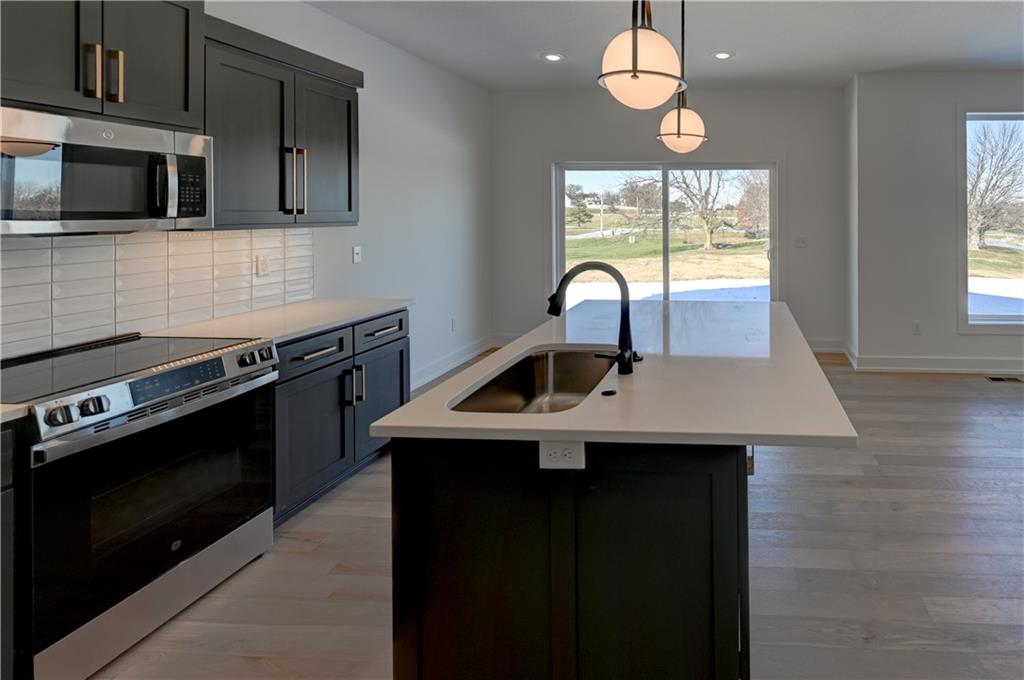 UNDER 500k -DELIVERY IN 30 DAYS BEST LOCATION ! NEW SINGLE FAMILY NEW CONSTRUCTION! FABOULOUS LOCATION, SERVICE PROVIDED (LAWN AND SNOW CARE) This new -spacious split level residence featuring main level living w/ 3 bedrooms/2 baths, and laundry room on an oversized beautiful lot overlooking large greenspace and pond. Open floor plan with lots of glass pouring into the kitchen, dining, and greatroom! Fabulous master suite, private bath w/ shower, double vanity & spacious closet. Two other bedrooms on main level & full bath. Secondary living area in the lower level that spans 30’x15′ with an additional bedroom/closet in LL w/ 3/4 bath. 2 car garage. Short distance to all services, airport, and highways.