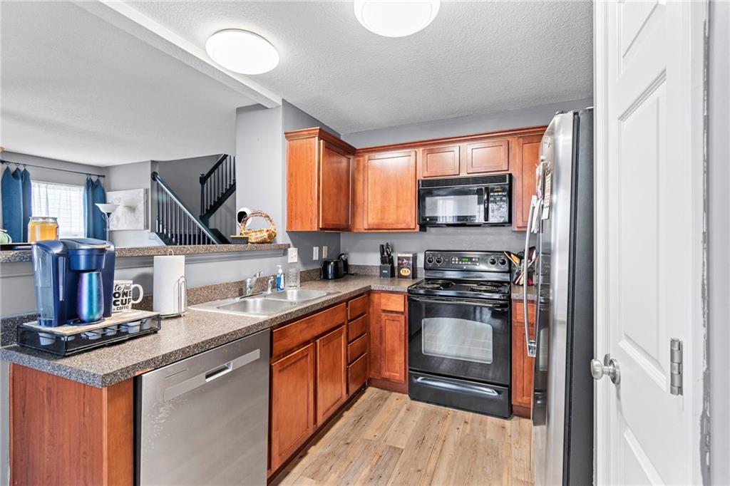 - Equipment Dishwasher, Refrigerator, Electric Range, Stainless Steel Appliance(s)