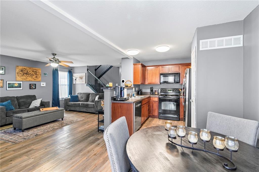 This charming 2-bedroom 2.5-bathroom half duplex offers modern comfort and convenience. Enjoy cozy evenings by the fireplace and appreciate the updated kitchen featuring a brand-new dishwasher and refrigerator. The home boasts new flooring and a new HVAC system for year-round comfort. Upstairs, you’ll find a convenient sitting area just outside the bedrooms, perfect for relaxing. The washer and dryer are also located on the second level, near the bedrooms. Plus, the large, unfinished basement is ready for your personal touch. The maintenance-free HOA covers insurance, roof, exterior, and lawn care, providing you with worry-free living.