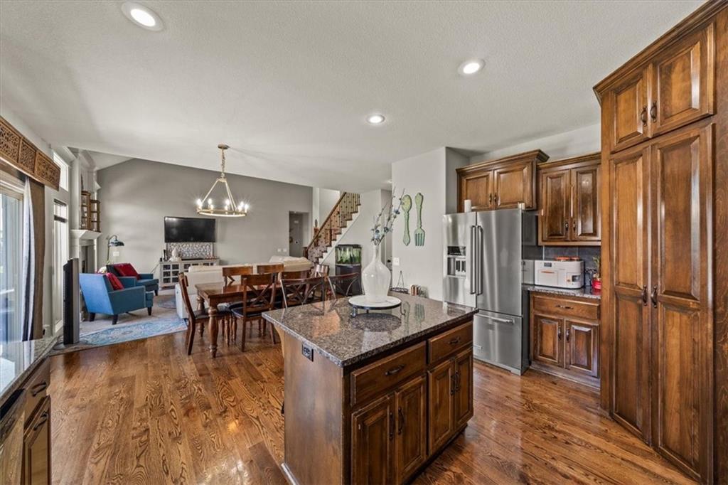 Outside, enjoy a private patio and a level backyard with an in-ground sprinkler system, perfect for relaxing or entertaining. Residents of this vibrant community also have access to walking trails and a neighborhood pool. Located just minutes from Zona Rosa’s shopping and dining options and only minutes from the new Kansas City International Airport, this home offers unmatched convenience and lifestyle.