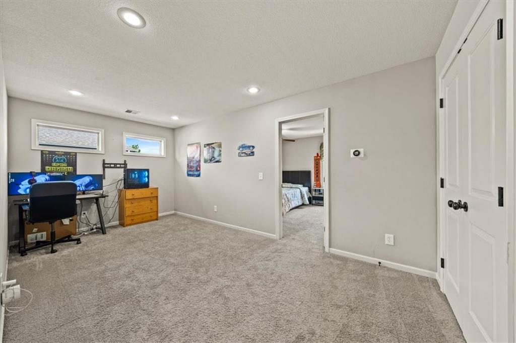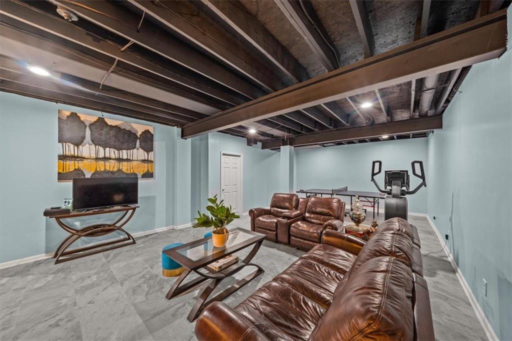 The fully finished lower level expands your living space with a large family room, a wet bar equipped with a dishwasher and a place to hold a refrigerator, a bedroom, and an additional full bathroom ideal for guests or multigenerational living.