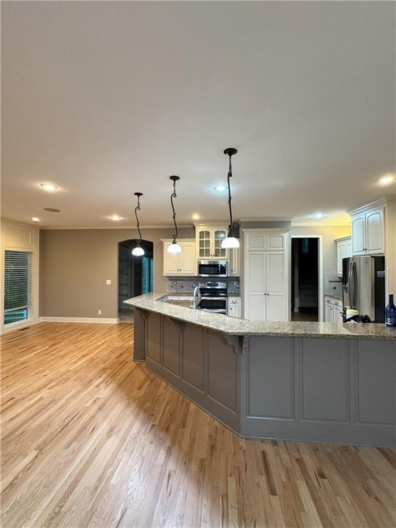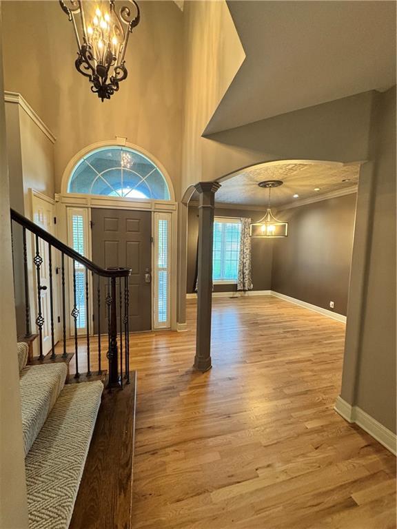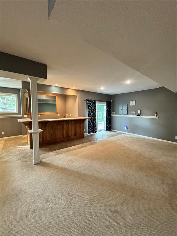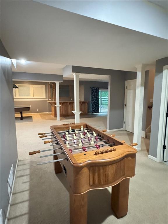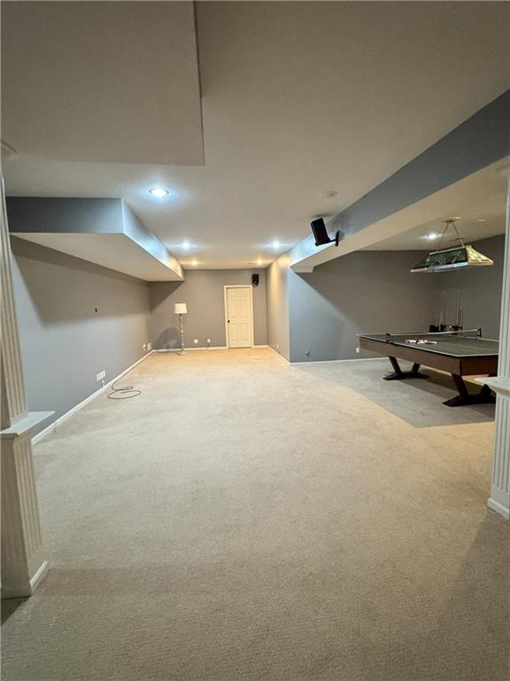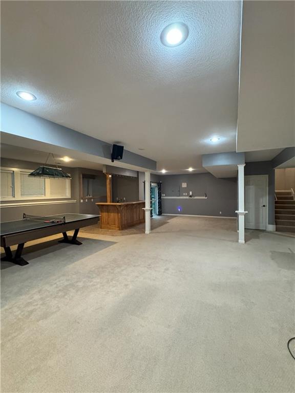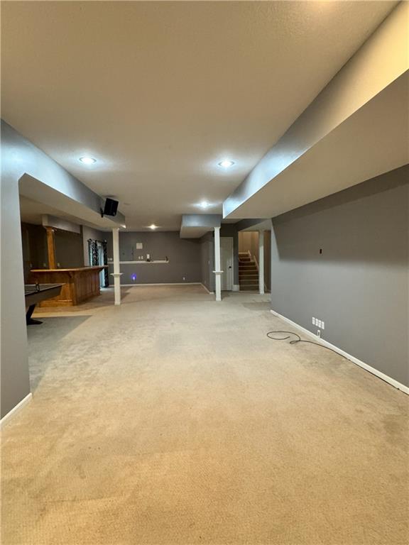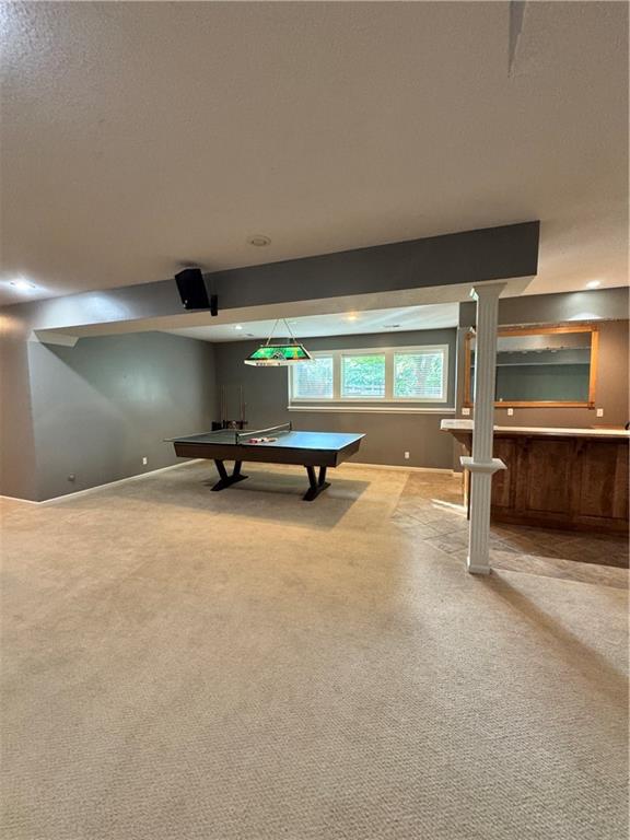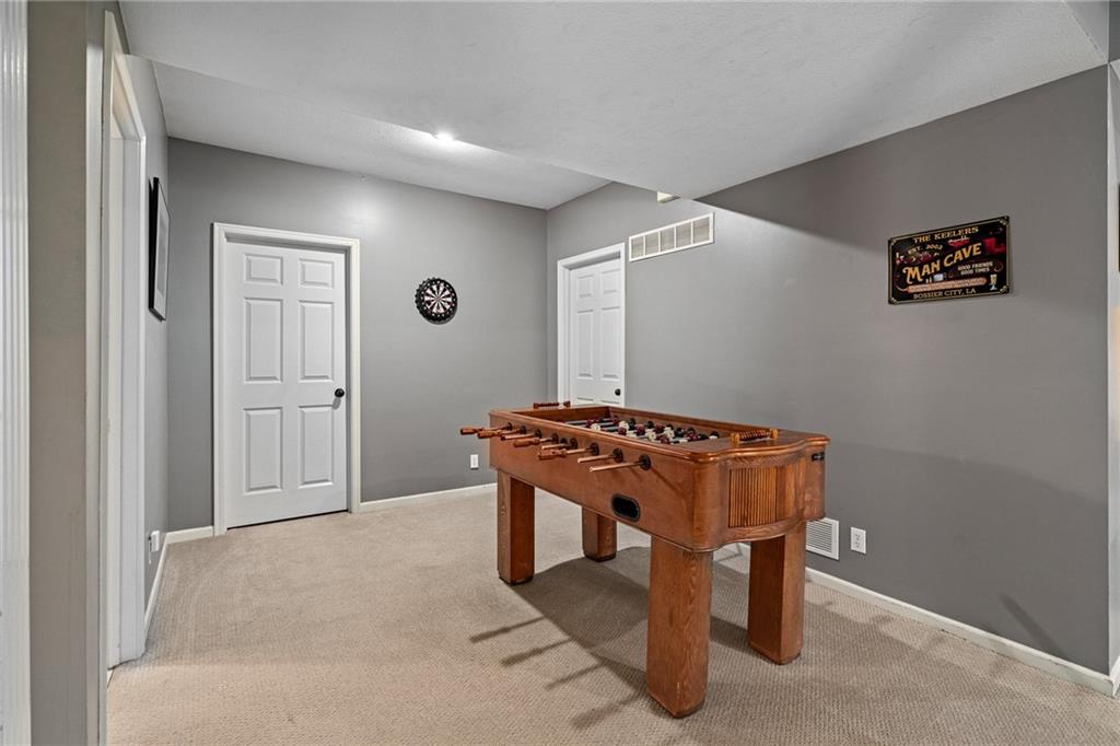 Hawksbury Neighborhood! Large square footage home with large, useful, comfortable family spaces. Space for entertaining! Uniquely spacious! Recent owner updates including refinished hardwood floors, handrails refinished, new paint, new garage door openers, new tile grout, and screened in porch leveled. The home features a Large Finished Walkout Basement with Built-in Bar that opens to the lower private patio. Cul-De-Sac placement and traffic with full-size trees and landscaping all around. The lot backs to a large private wooded property. Screened in Porch off Large Dining area provides another relaxing and entertainment area. Large Kitchen with extra-large dining-entertaining space. The home is perfect for family dinners, holidays, entertaining, special events. The Extra storage space off kitchen area with custom pantry/library/extra space and new built in shelving. New Carpet in Primary Bedroom, Hall, Stairs, and Living. Over-sized Primary Bedroom with sitting area, Jacuzzi tub, walk in shower, and large walk-in closet. Lawn Sprinkler system. Many recent added owner improvements including new black metal fence, custom exterior programmable house lighting, insulation, security, exterior paint, selected new windows. Plus, other upgrades like new gutter guards, new high efficiency zoned dual HVAC systems in 2019, security system, and epoxy garage floor! Roof is only 6 years old. Existing Radon reduction system. Google Fiber on site. The pool table and foosball table are currently included with the home. Must take a look!!