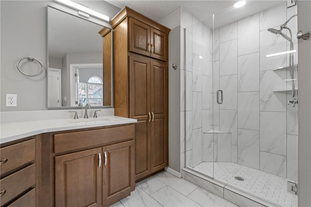 Welcome to this beautifully maintained Atrium Split offering an ideal blend of updates, space, and modern comfort. Featuring a 3-car garage, brand-new roof (11/2025), and several new windows, this home is move-in ready with thoughtful improvements throughout. Step into the vaulted main level, where natural light fills the open kitchen, dining area, and living room. The updated kitchen features new countertops, a stylish backsplash, white cabinets, stainless steel appliances, and a walk-in pantry. Retreat to the upgraded primary suite, complete with a walk-in shower, double vanity, and large walk-in closet. With multiple living areas, there’s plenty of room to spread out, including a bonus lower-level living room with a half bath and access to the patio and a finished basement featuring a spacious rec room. Outside, enjoy a large fenced backyard with a covered deck and open patio, offering great options for relaxation and entertaining. This home truly offers the space, style, and updates—don’t miss it!