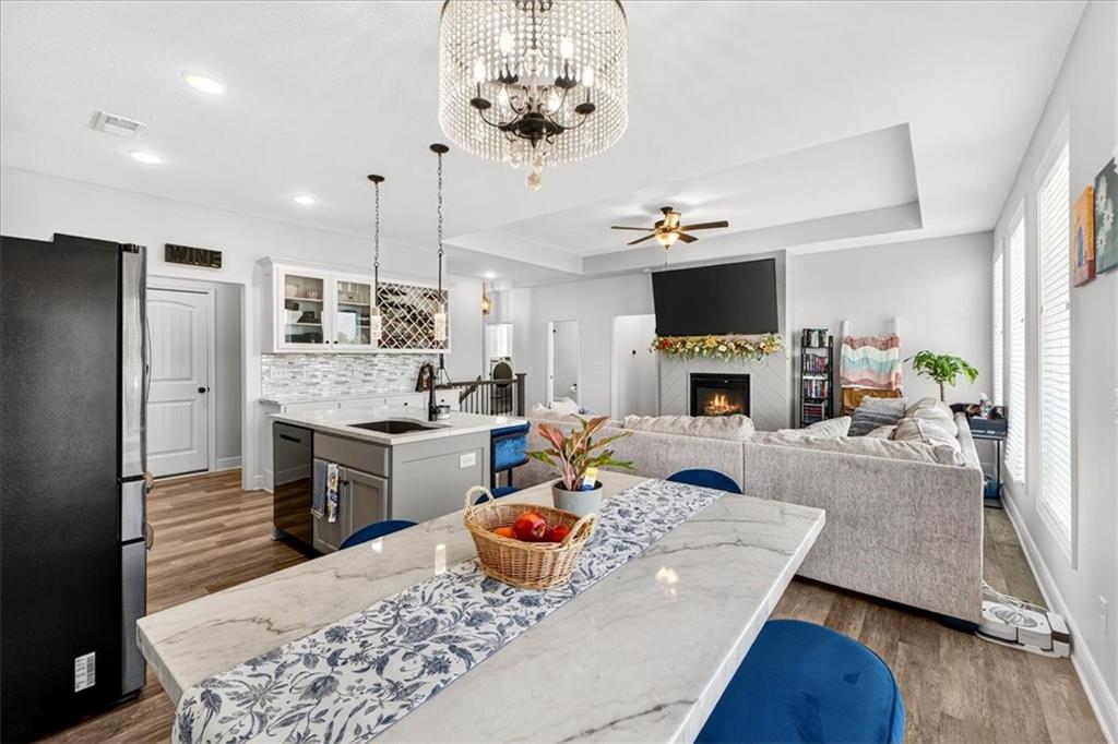 Welcome to this beautifully maintained 3-bedroom, 2.5-bathroom home in desirable North Kansas City. The open main level is filled with natural light from large windows, creating a bright and inviting living space. The upgraded kitchen features modern finishes, a walk-in pantry, and flows seamlessly into the dining and living areas, perfect for entertaining. The spacious primary bedroom offers a large walk-in closet and a private ensuite bath. The finished lower level includes a walkout basement, ideal for a second living area or home office. Step outside to enjoy the oversized patio and elevated deck, perfect for outdoor gatherings. Conveniently located near schools, parks, shopping, and highway access.