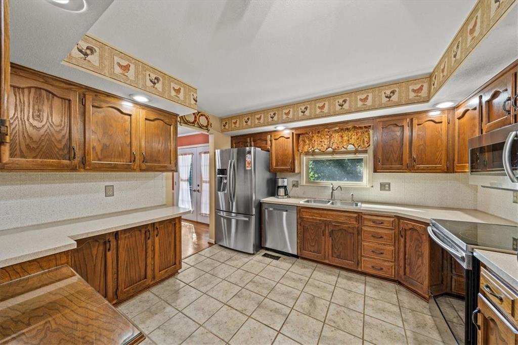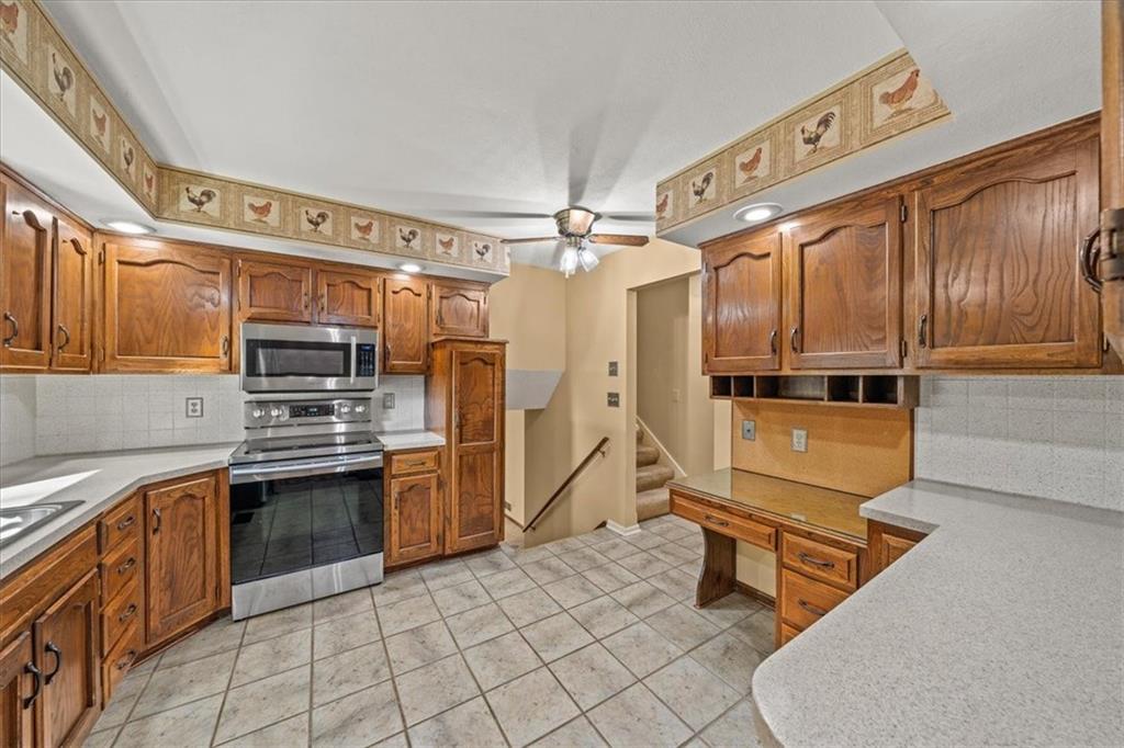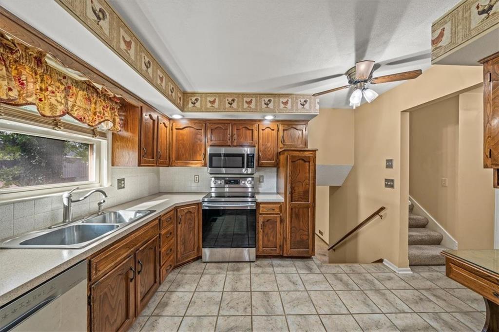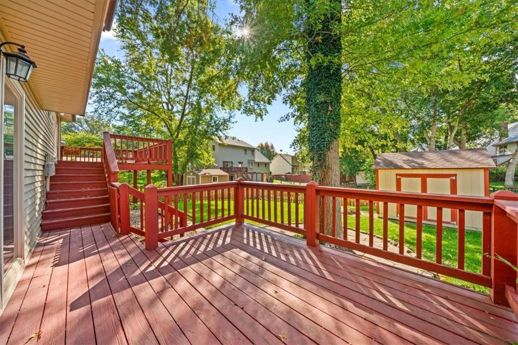 Well maintained home with gorgeous back yard and deck. Formal dining room plus custom kitchen cabinets. Lower level has warm fireplace and walks out to plush yard with sprinkler system. Mature trees and sidewalks in the neighborhood make the area a place people move in and stay. This home you will love the floors with nice wood grain texture and neat trim. Sliding doors to deck overlooking spacious yard with shed. Don’t miss out!