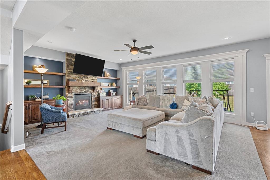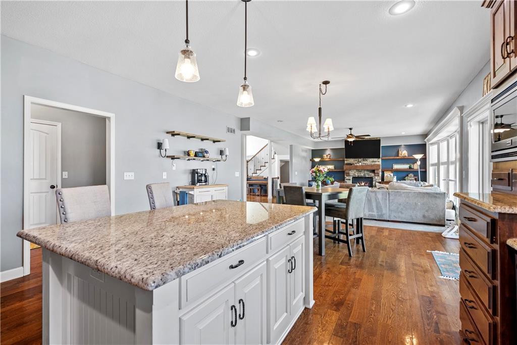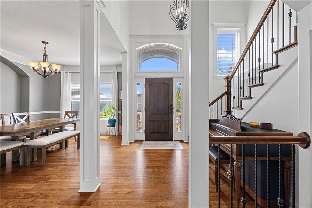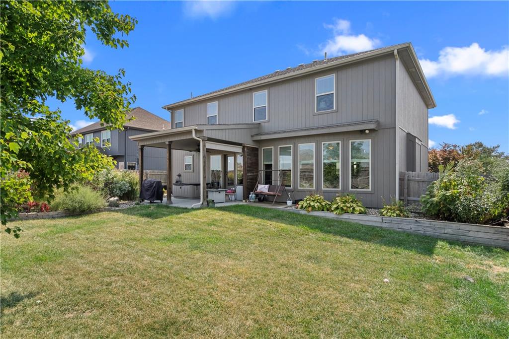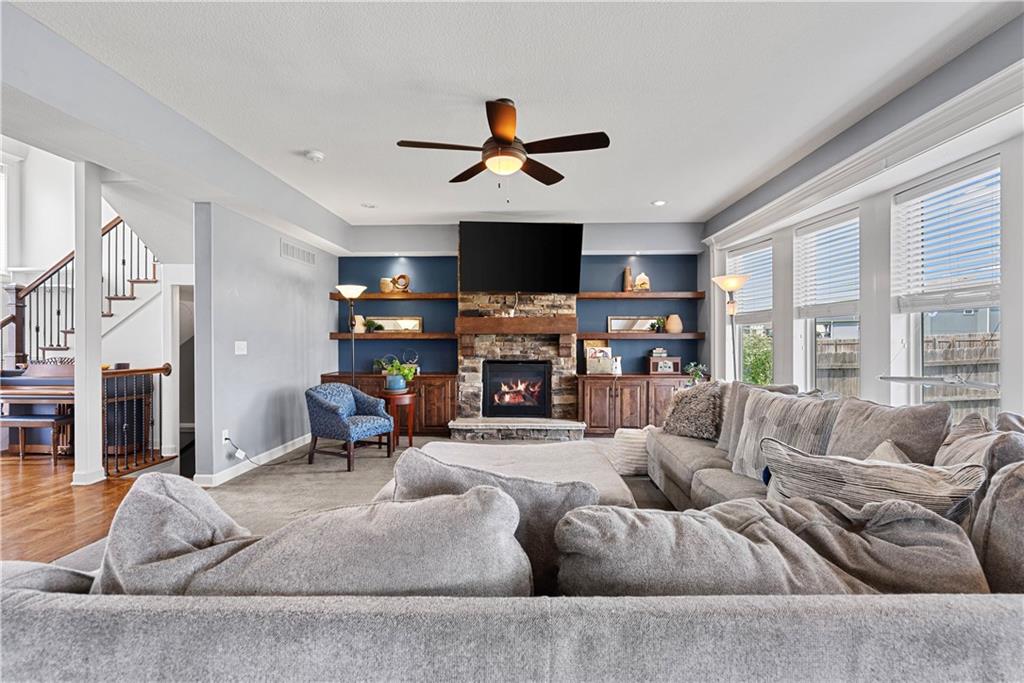 NEW PRICE OCTOBER 30th! At $140 per finished square foot, this home is priced lower than new construction! This 5-bedroom, 4.5-bath home offers over 4,000 sq. ft. of comfortable living space designed for everyday life and special gatherings. The open main level flows easily between the living room, dining area, and kitchen, complete with a spacious pantry and a convenient half bathroom. Upstairs, four bedrooms provide plenty of room—two share a Jack & Jill bath, one has its own en suite, and the primary suite is a true retreat with a spa-like bath and walk-in closet. Downstairs, the finished basement is perfect for game nights and guests, featuring a rec room, wet bar, 5th bedroom, and full bath. Step outside to a fenced yard, or enjoy the neighborhood pool, trails, and play area. All this just minutes from the airport and only 20 minutes from downtown KC! Welcome home!