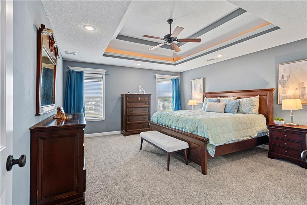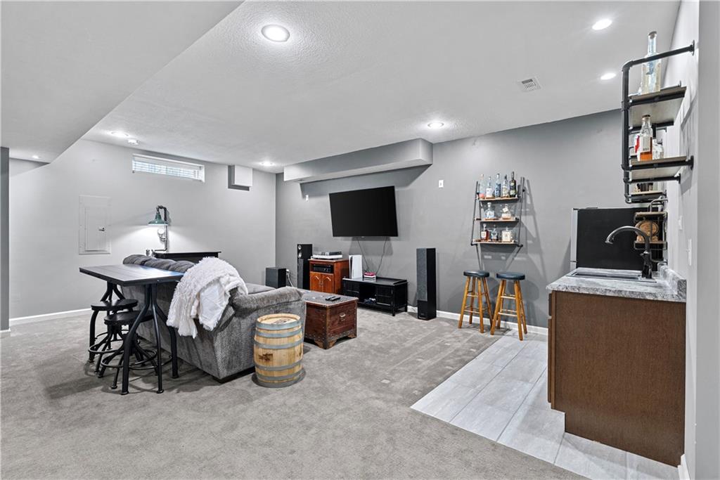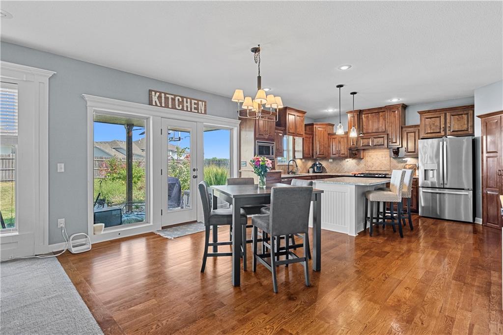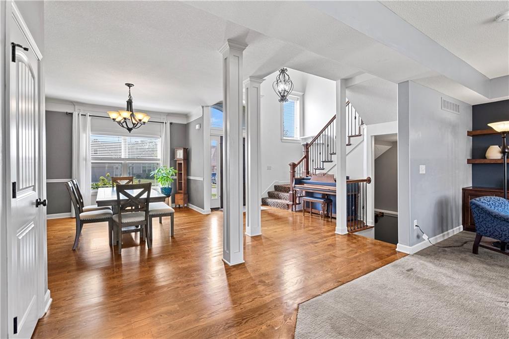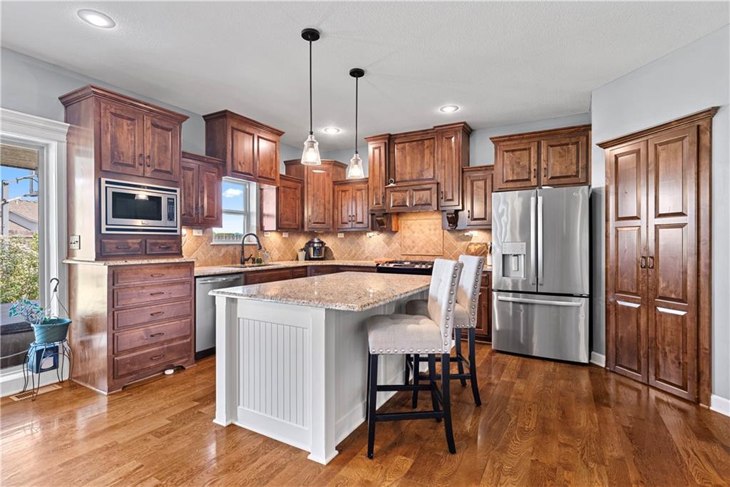 NEW PRICE OCTOBER 30th! At $140 per finished square foot, this home is priced lower than new construction! This 5-bedroom, 4.5-bath home offers over 4,000 sq. ft. of comfortable living space designed for everyday life and special gatherings. The open main level flows easily between the living room, dining area, and kitchen, complete with a spacious pantry and a convenient half bathroom. Upstairs, four bedrooms provide plenty of room—two share a Jack & Jill bath, one has its own en suite, and the primary suite is a true retreat with a spa-like bath and walk-in closet. Downstairs, the finished basement is perfect for game nights and guests, featuring a rec room, wet bar, 5th bedroom, and full bath. Step outside to a fenced yard, or enjoy the neighborhood pool, trails, and play area. All this just minutes from the airport and only 20 minutes from downtown KC! Welcome home!