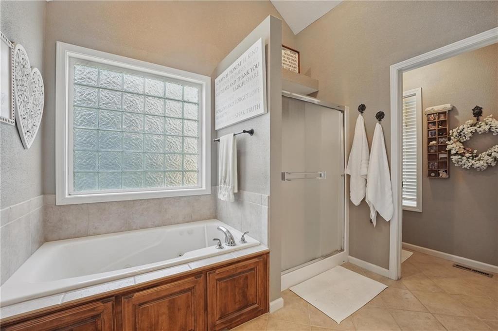 Retreat to the expansive primary suite with vaulted ceilings, a walk-in closet, a jetted tub, and a separate walk-in shower, your private escape at the end of the day. Enjoy outdoor living on both the deck and patio, ideal for hosting or relaxing in peace.