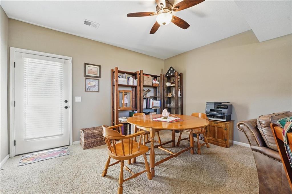 The layout includes three full bathrooms and a tiled laundry room for maximum convenience. The walk-out lower level expands your living space with a spacious family room, a cozy office nook, and a practical drop zone.