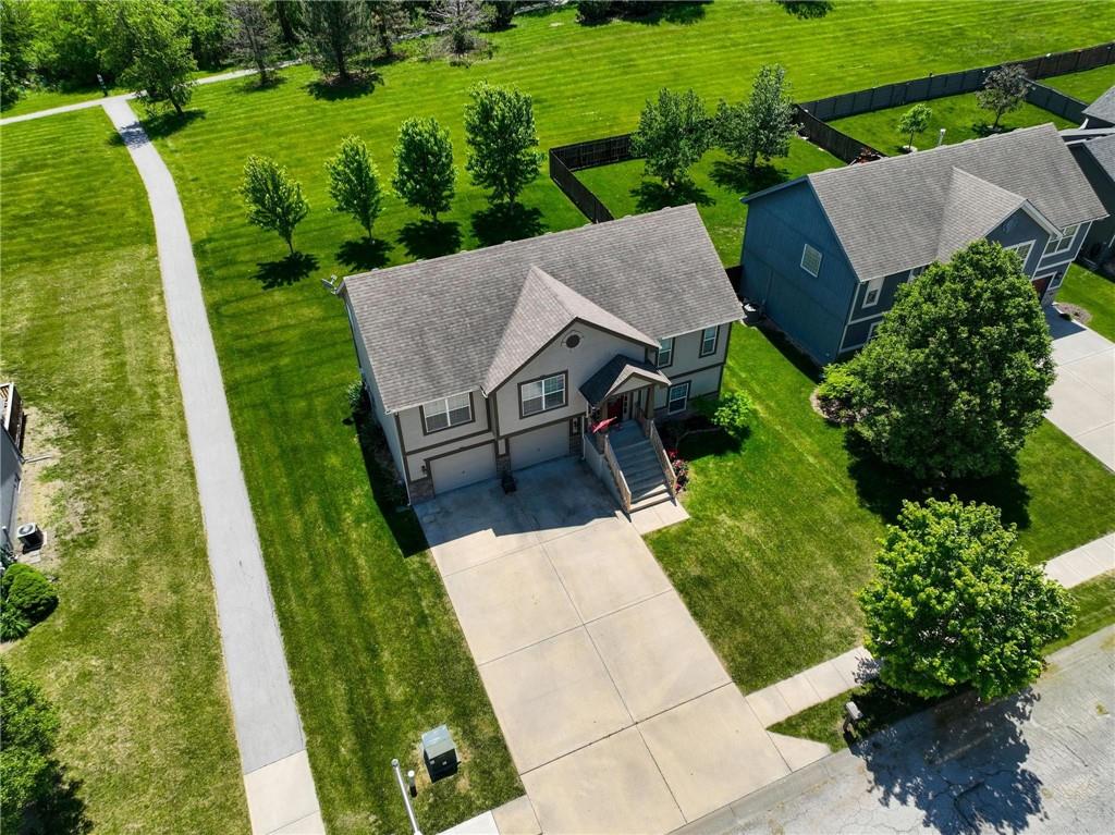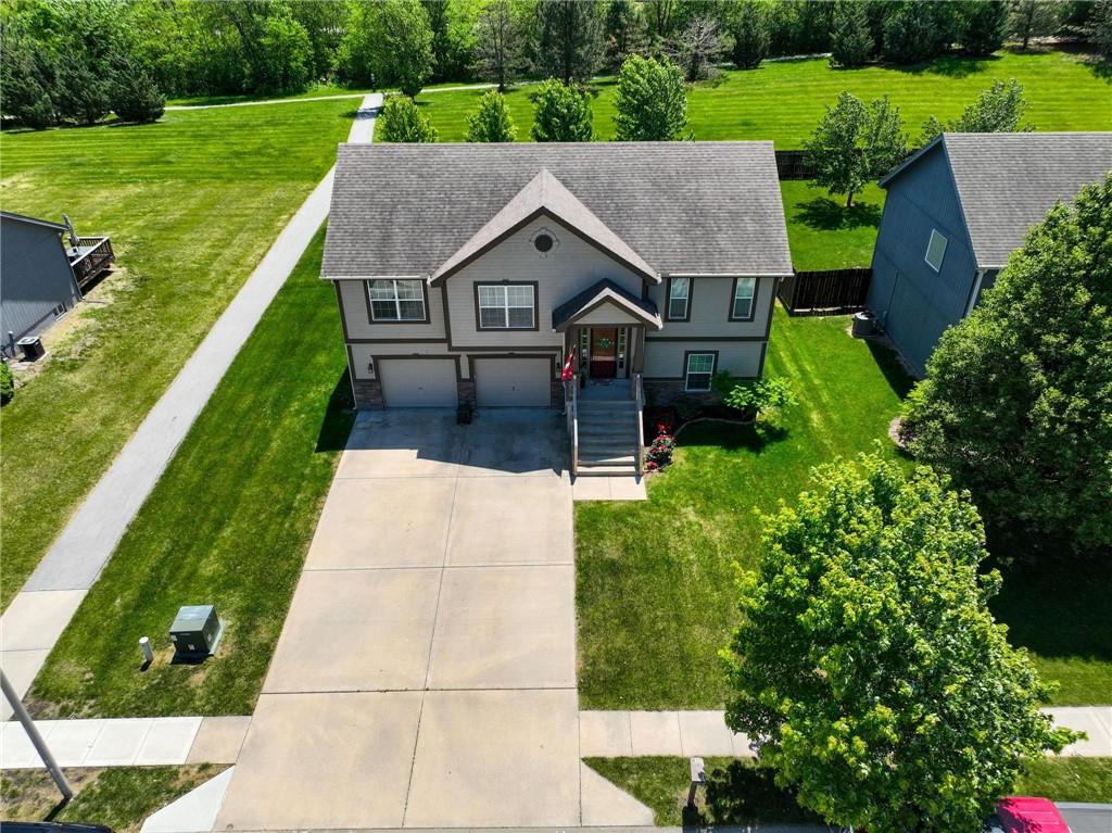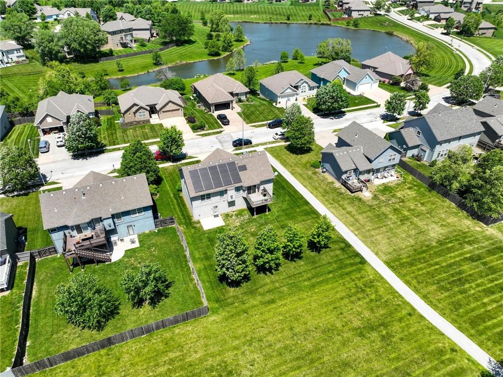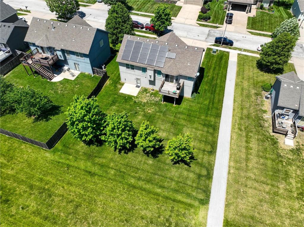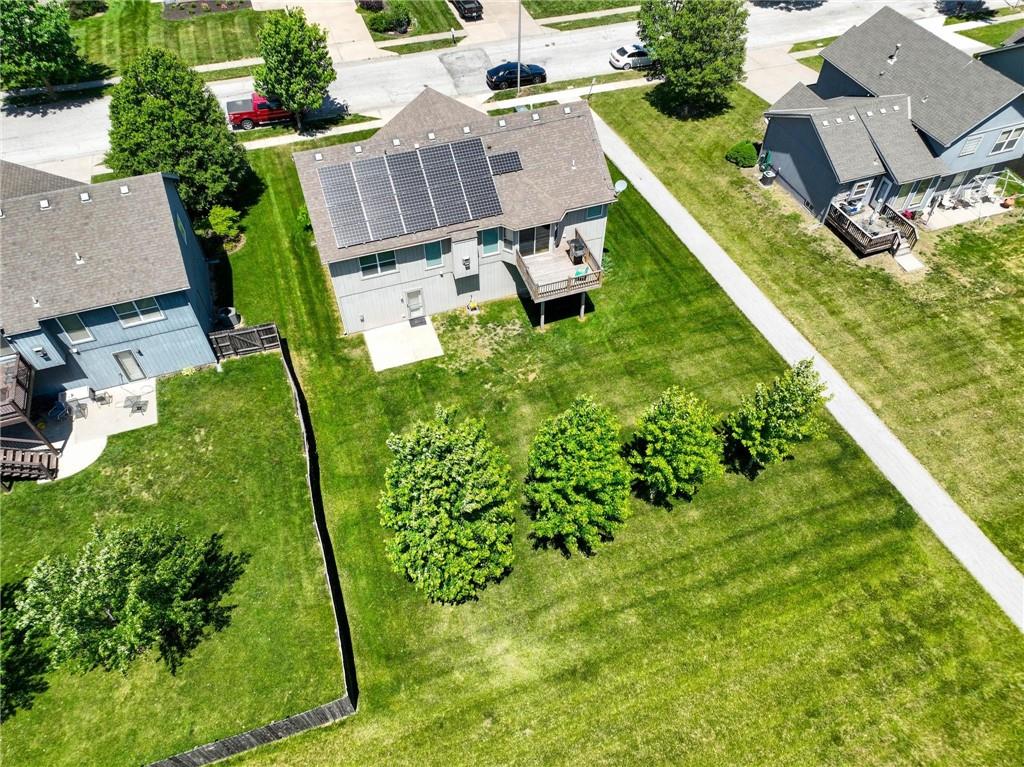 Welcome to this thoughtfully designed open-concept split-level home, where comfort meets efficiency. Built with energy-conscious 2×6 construction, this home features state-of-the-art geothermal heating and cooling, plus a solar energy system, keeping Evergy bills impressively low, averaging around $15 per month.