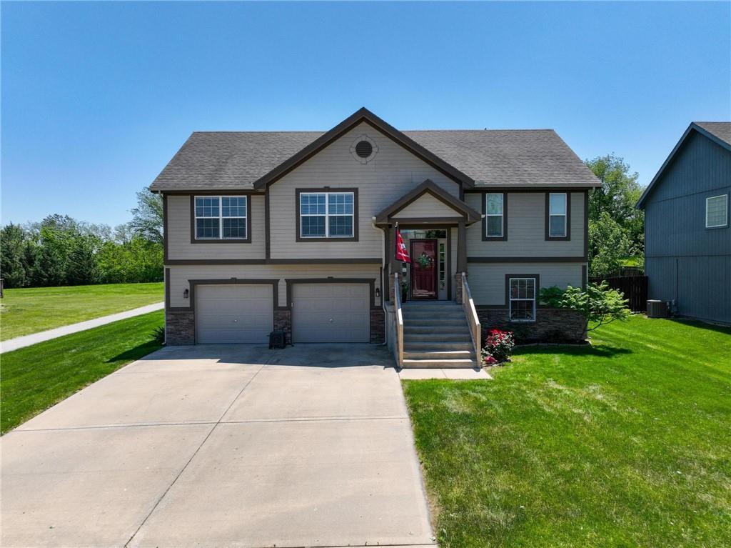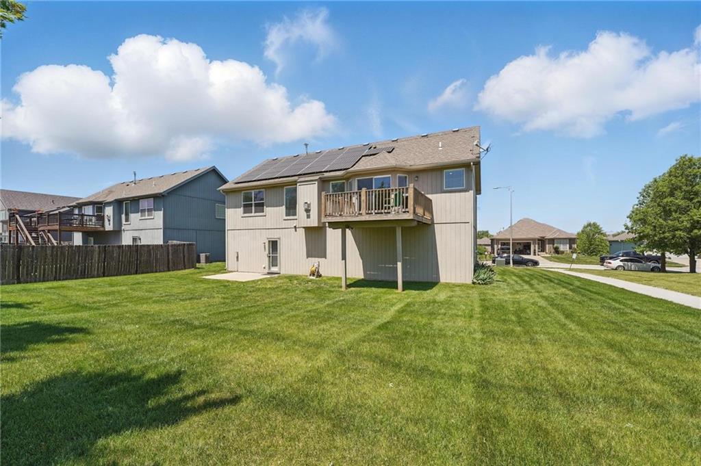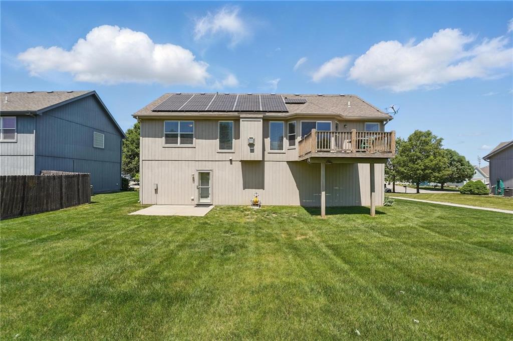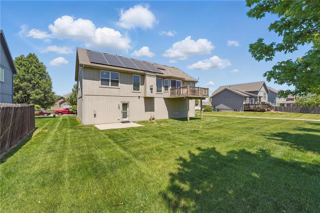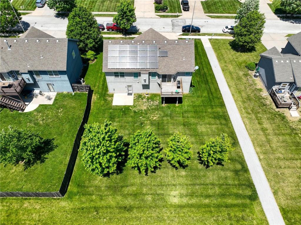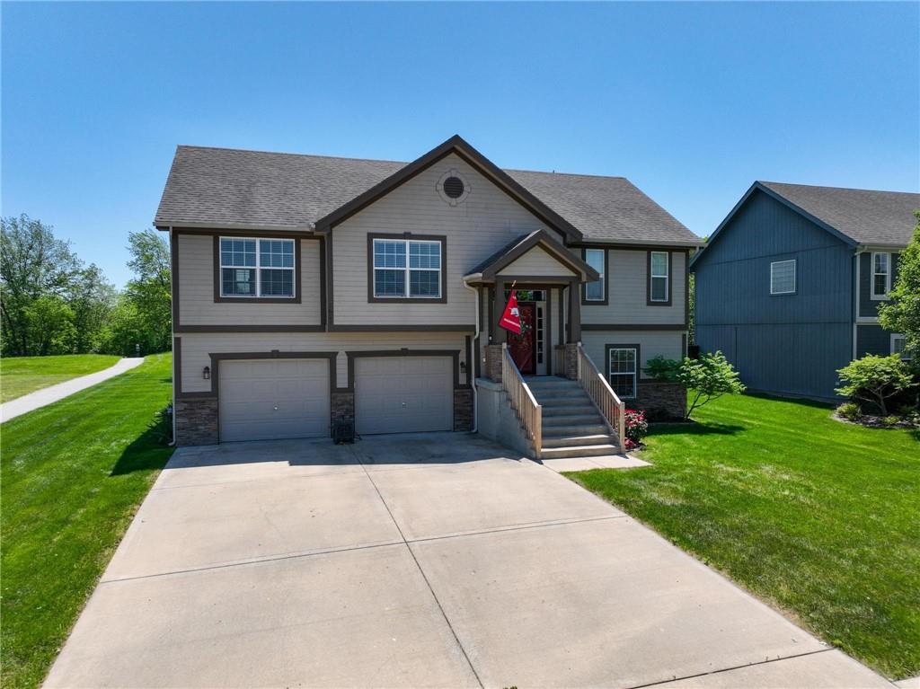 Welcome to this thoughtfully designed open-concept split-level home, where comfort meets efficiency. Built with energy-conscious 2×6 construction, this home features state-of-the-art geothermal heating and cooling, plus a solar energy system, keeping Evergy bills impressively low, averaging around $15 per month.