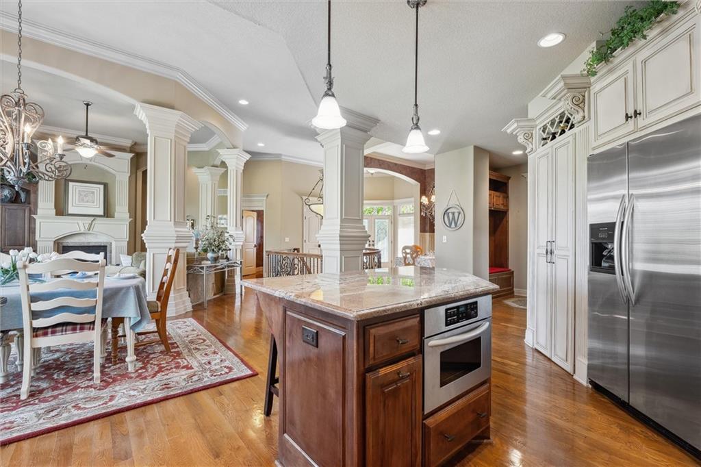 MAJOR PRICE REDUCTION! LOWEST PRICED 3BR IN STALEY FARMS! This is a square foot GEM! If you want to live in Staley Farms, this home is one of the best ways to do it! This beautiful 3BR/3.1BA reverse 1.5-story home offers desirable MAIN LEVEL LIVING, with a spacious, open floor plan! The recently painted Dining Room is perfect for entertaining! The Kitchen features stainless steel appliances (all STAY) and updated light fixtures, while the cozy Living Room offers tons of natural light and a beautiful fireplace! The adjacent Primary Suite includes a ceiling fan, dual vanities, a large walk-in closet, and a built-in vanity. Downstairs, you’ll find two generously sized Bedrooms—each with private baths and walk-in closets! A large Family Room with a second gas fireplace, a small wine room, and a second kitchen with a BRAND NEW (Oct. 2025) dishwasher, microwave, and mini fridge complete this level! Enjoy outdoor living on the uncovered or covered patios and deck, with stairs down to the Patio! Recent updates include a NEW HVAC system and gutter guards! BRAND NEW (Oct. 2025) EV 240 Volt Charger installed in garage! Neighborhood amenities include pool, pickleball/basketball, tennis courts & a a gym, with optional memberships to the renowned Staley Farms Golf Club! Located in the North Kansas City School District and just 15 minutes from the airport, downtown, and Zona Rosa, this home is perfectly situated between Liberty and Parkville with easy access to shopping and dining. Schedule your tour today ~ this beautiful property is waiting for you to call it HOME!