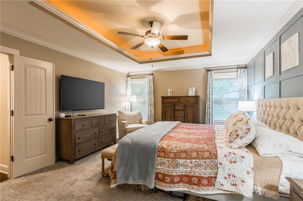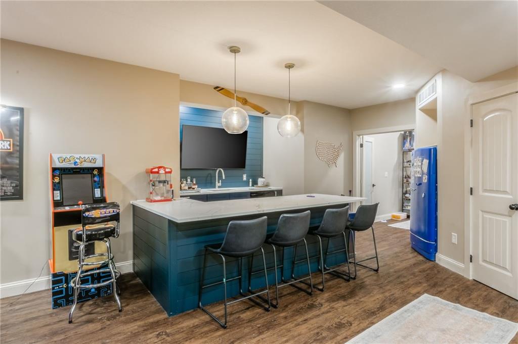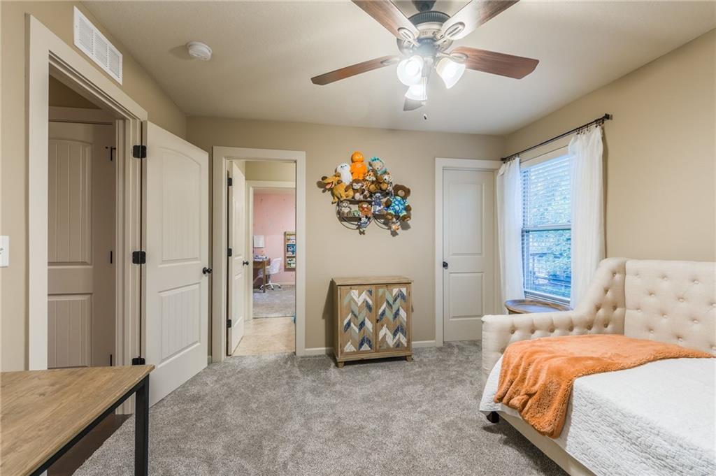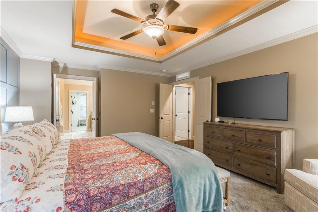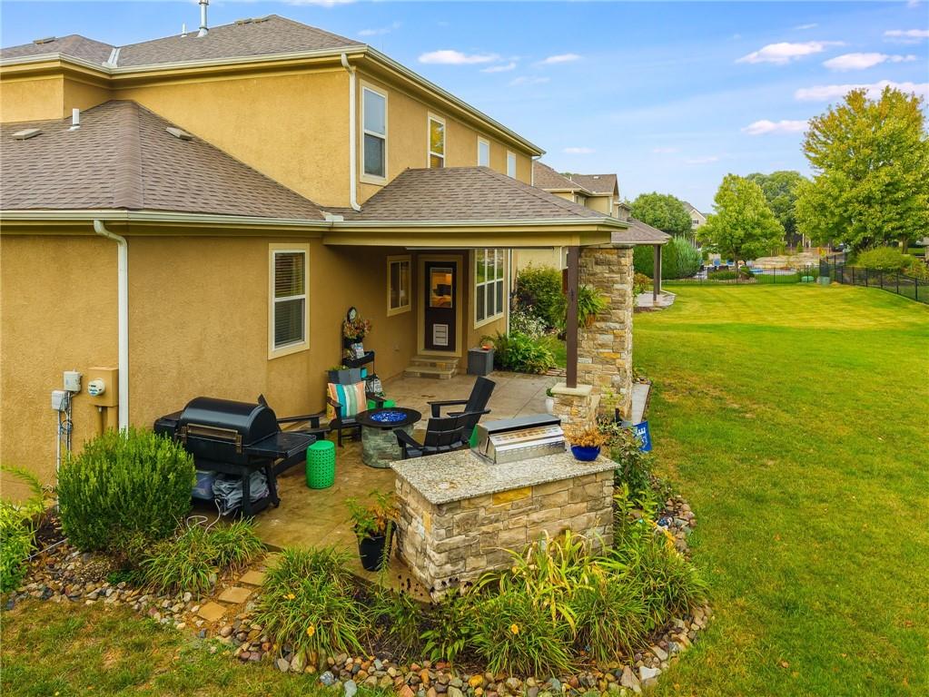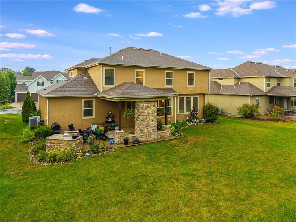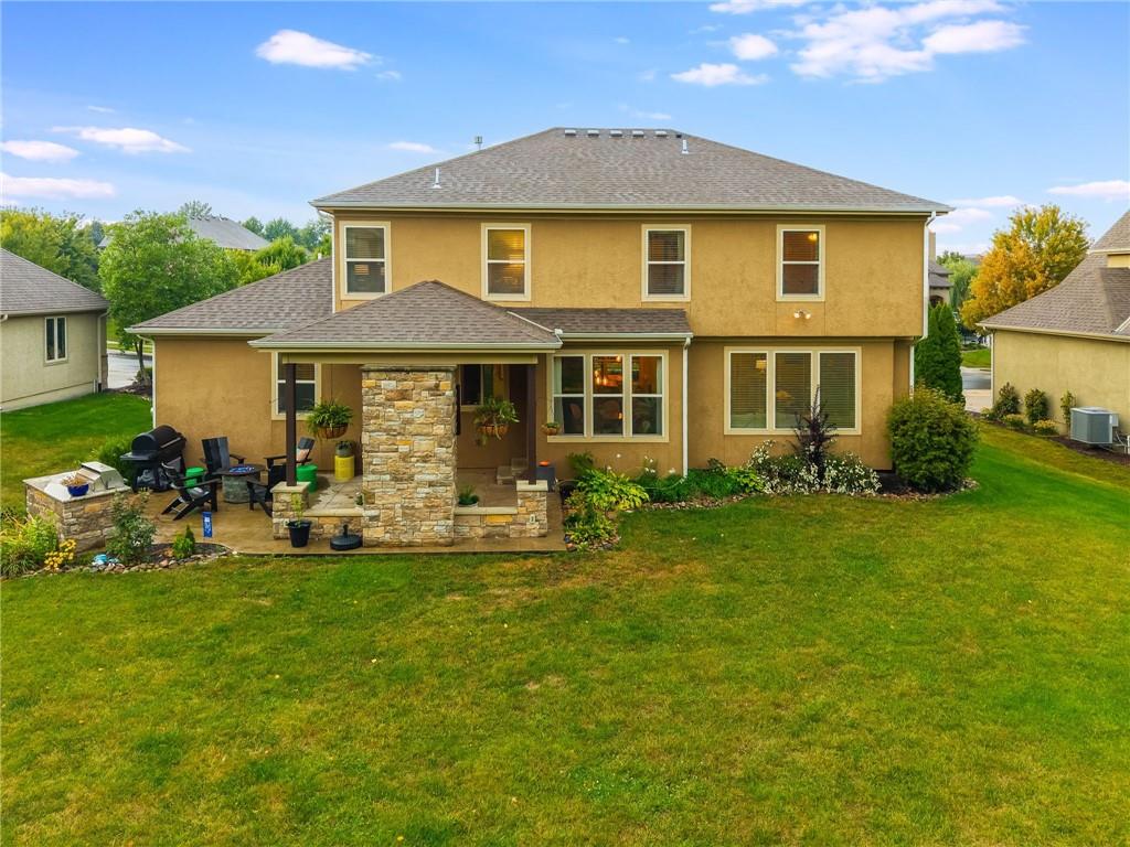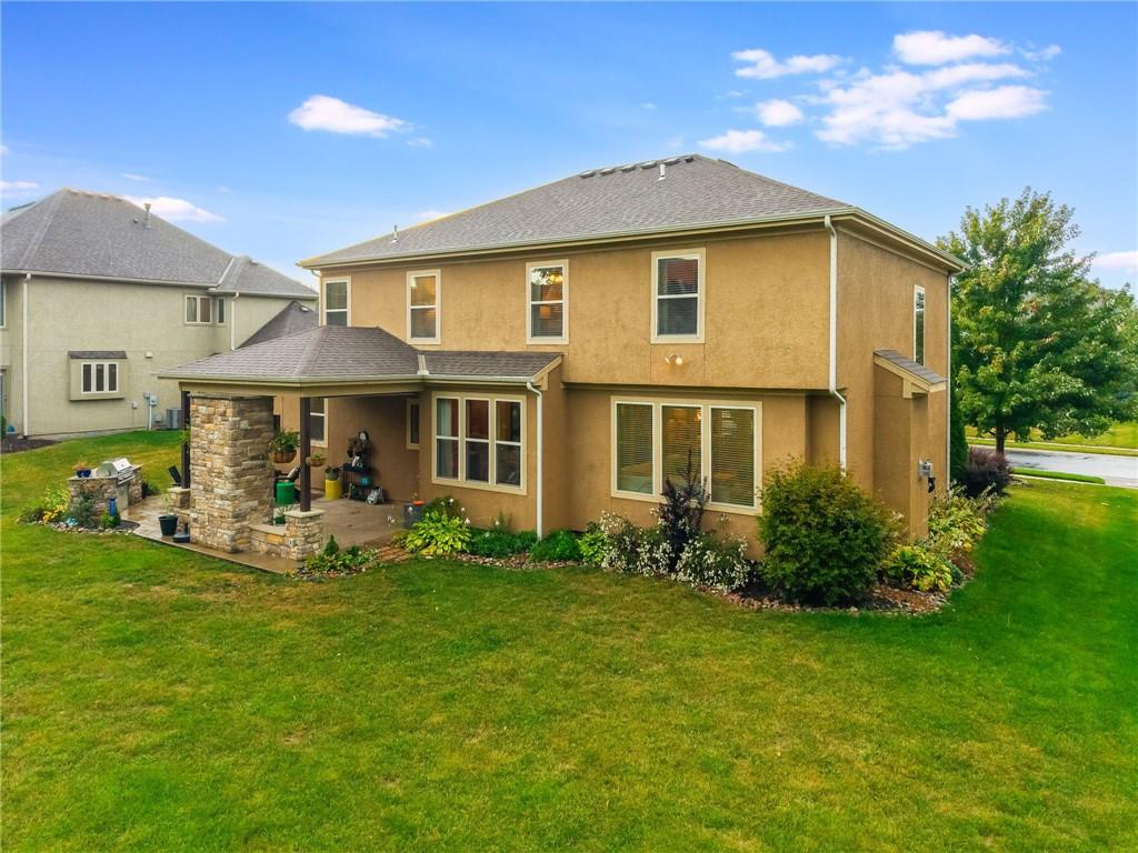 Sellers are motivated due to an upcoming relocation. Don’t miss your opportunity to own this amazing home! Impeccably maintained and thoughtfully cared for, this stunning residence in the highly sought-after Staley Farms community is ready to impress! Offering six bedrooms and five full bathrooms – including one on the main level with an adjacent full bath – it’s perfect for guests, multigenerational living, or home office. The chef’s kitchen is as functional as it is beautiful, showcasing granite countertops, a center island, built-in beverage cooler, abundant cabinetry, and a spacious walk-in pantry. Just steps away, immerse yourself in the outdoor oasis – a covered patio with a cozy fireplace and built-in TV cabinet, an expansive stamped concrete dining area, and a custom grilling station with granite countertop. Lush landscaping with stone borders frames the level backyard, for both relaxation and entertaining. Inside, updates include fresh interior paint, newer carpet, upgraded garage units, stylish coach lights, and blinds throughout – all wrapped in the timeless look of an all-stucco exterior. Upstairs, each bedroom offers large closets and ceiling fans, while the convenient laundry room makes daily living a breeze. The primary suite is a retreat of its own with granite-topped dual vanities, striking copper vessel sinks, a walk-in tiled shower, whirlpool tub, and a generous walk-in closet. The fully finished basement is an entertainer’s paradise—perfect for game nights, movie marathons, or casual gatherings. This level features a spacious rec area enhanced by smart lighting, a kitchenette with granite countertops, and abundant storage, plus a full bedroom and bathroom for guests. To top it off, the ping pong table stays, making this space ready for endless fun and relaxation. Living in Staley Farms means enjoying resort-style amenities right at your doorstep: golf course, zero-entry pool, indoor basketball court, exercise rooms, tennis & volleyball courts.