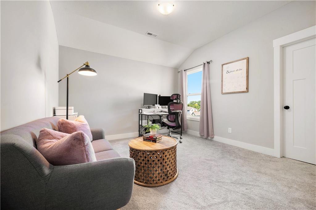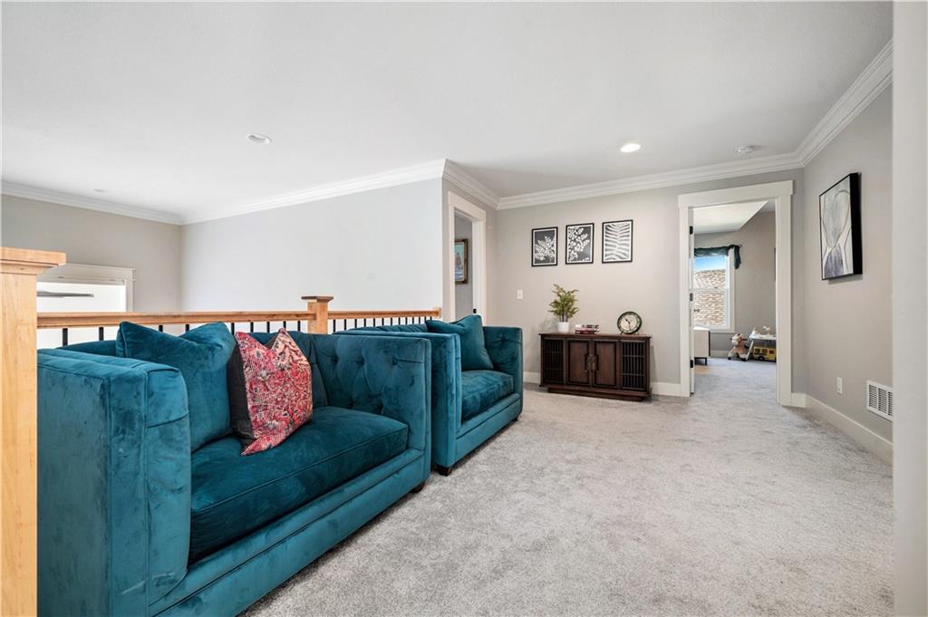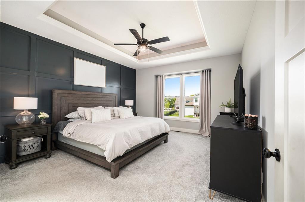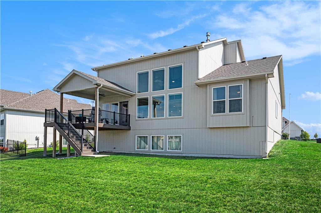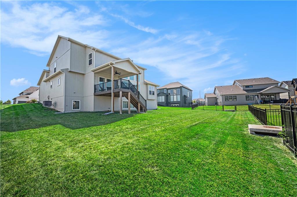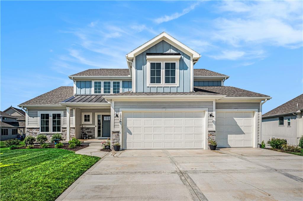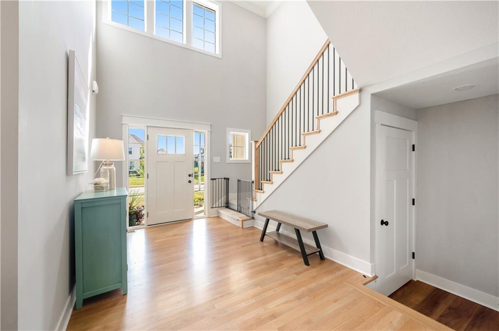Beautiful 1.5 story located in popular Cadence subdivision. This 4 bedroom, 3.5 bath, and 3 car garage features tons of upgrades and was built in 2022. Aspen Mimosa floor plan. Entering through the home, one will be greeted with soaring ceilings, open floor plan, walls of windows, light hardwood floors, and an abundance of natural light. Chefs kitchen comes equipped with quartz countertops, oversized island, large walk-in pantry, gas stove, SS appliances, and loads of cabinet space. Kitchen opens to expansive great room with stone gas fire place, built-in shelving, and floor to ceiling windows with remote control blinds. Dining room walks out onto covered patio overlooking the back yard. Landry room and mud room area is off the kitchen. Main level primary suite is a true retreat offering double vanity, oversized shower, freestanding tub, and walk-in closet. Upstairs versatile loft area opens to great room below. Three additional bedrooms are located on the second floor. Two bedrooms share a Jack & Jill bath, while the third enjoys privacy of its own ensuite. All bedrooms have walk-in closets! Massive unfinished daylight basement with endless potential. Neighborhood amenities include swimming pool and walking trails. Located in the highly sought after Staley School District. Home is priced under new construction.