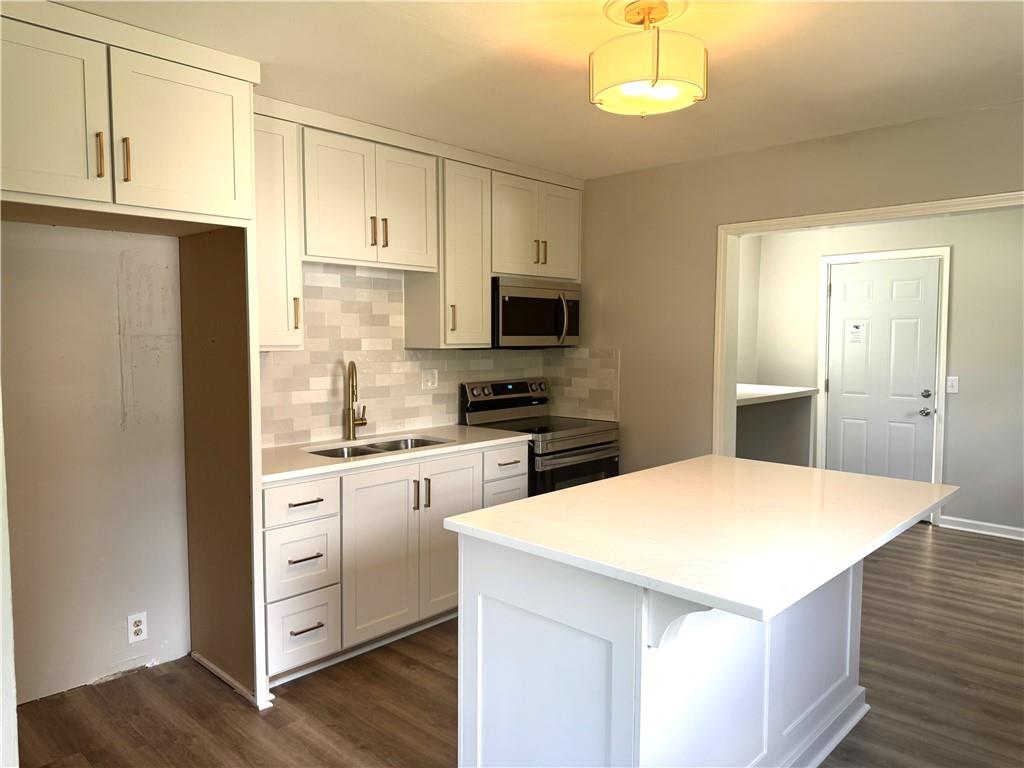 Newly renovated! New siding with transferrable warranty. New windows. Beautiful kitchen with custom cabinets, quartz countertops, s/s appliances, and tile backsplash. LVP in kitchen, laundry, and family room. Three bedrooms with new carpet. Two bedrooms are large and the third would make a great home office or nursery. Located on a large corner lot. This will make a great first home and is in a price range that is hard to find! Owner/Agent