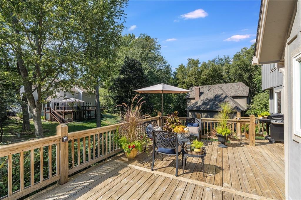 Tucked away on a quiet cul-de-sac in the sought-after New Mark neighborhood, this spacious 4-bedroom, 3.5-bath home offers over 3,000 sq. ft. of comfortable living space and plenty of charm. The first floor has been freshly painted, and the updated kitchen features beautiful stone countertops and tile accents. The laundry area is conveniently located just off the kitchen, making daily chores a breeze. Step outside to the large deck overlooking the private, tree-filled backyard — the perfect spot to enjoy your morning coffee. Inside, you’ll find a flexible layout with both a formal dining room and a separate living room, plus a cozy family room featuring built-in shelving, a wet bar, and a fireplace for those chilly evenings. The finished walkout basement provides even more living space with a full bathroom, another wet bar, and a second fireplace — an ideal setup for entertaining, relaxing, or hosting guests. This well-maintained home also includes thoughtful touches like a cedar closet and generous storage throughout. Neighborhood amenities are just two blocks away and include a pool, tennis courts, and pickleball courts. With easy access to highways, shopping, and the airport, this home offers the perfect blend of comfort, privacy, and convenience.