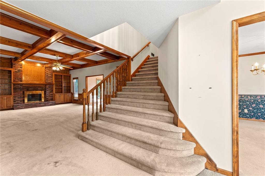Hurry and make this beautiful home your own! This 1 1/2 story home has four bedrooms, a formal dining room, office/den space, living room, rec room, eat in kitchen, two fireplaces and even a sauna! The wooden beams in the living room add elegance to the home. The large deck is a great place to enjoy a cup of coffee in the morning or a beverage at night. There is a large backyard backing to trees and a third garage in the lower level of the home. Hurry and don’t miss out!