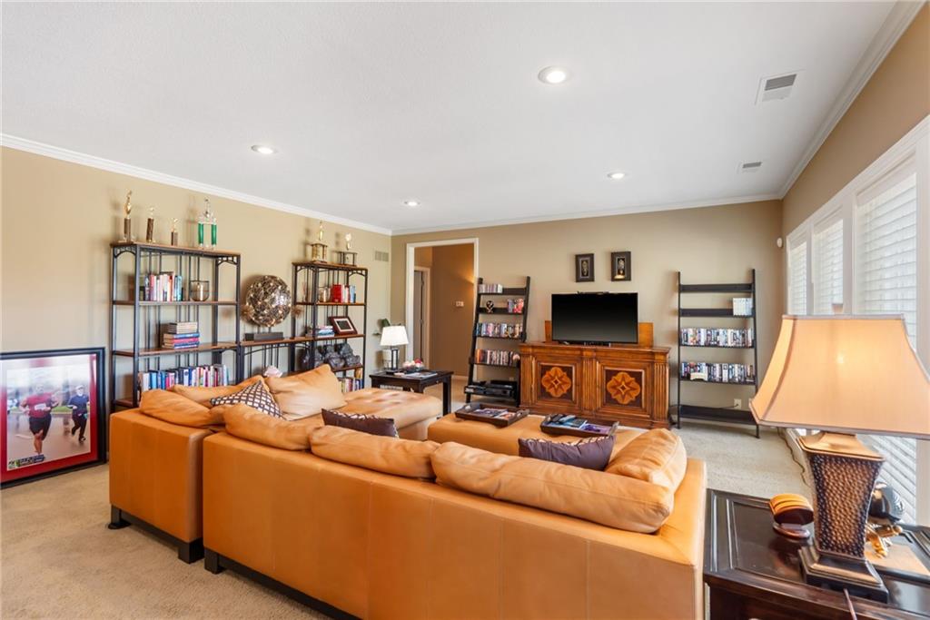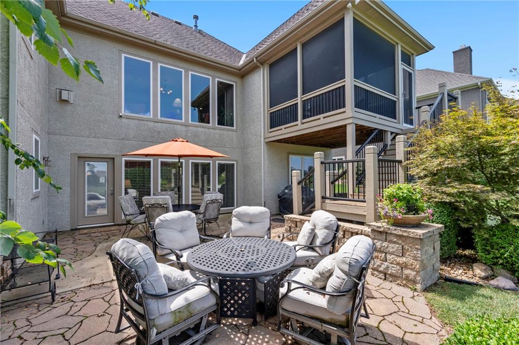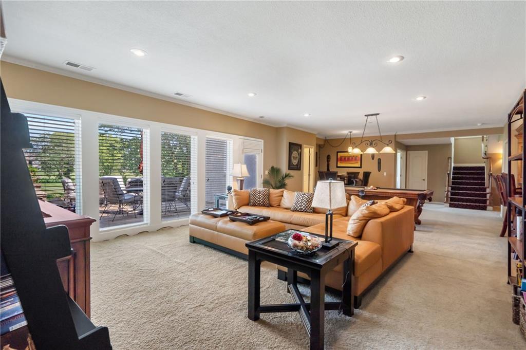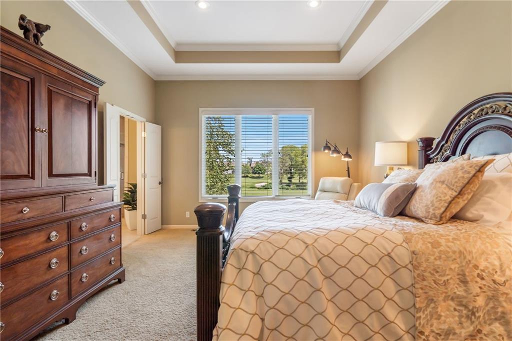 The finished lower level expands the home with additional bedrooms, full baths, recreation space, and walk-out access to a private patio framed by sweeping golf course views. Outdoor living continues on the covered deck—perfect for morning coffee or evening cocktails.
