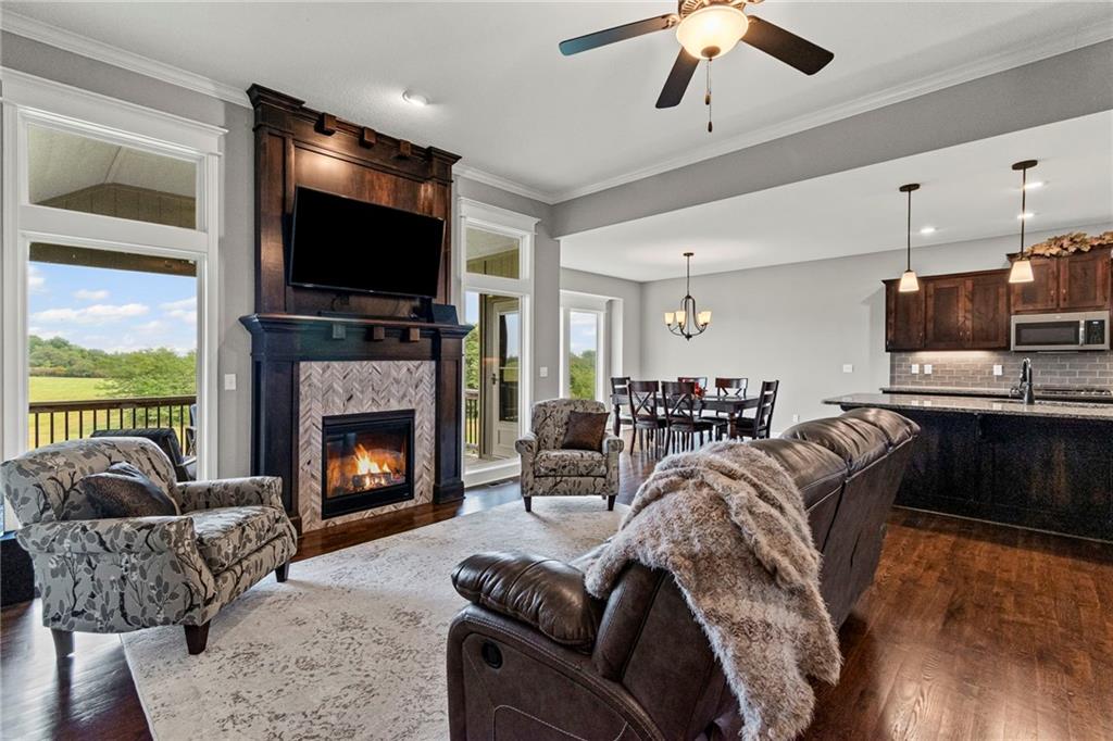 Outside is a covered deck where you can enjoy peaceful moments and pristine views. Back inside is the great room with gas fireplace and plenty of room for a sectional or multiple seating pieces.