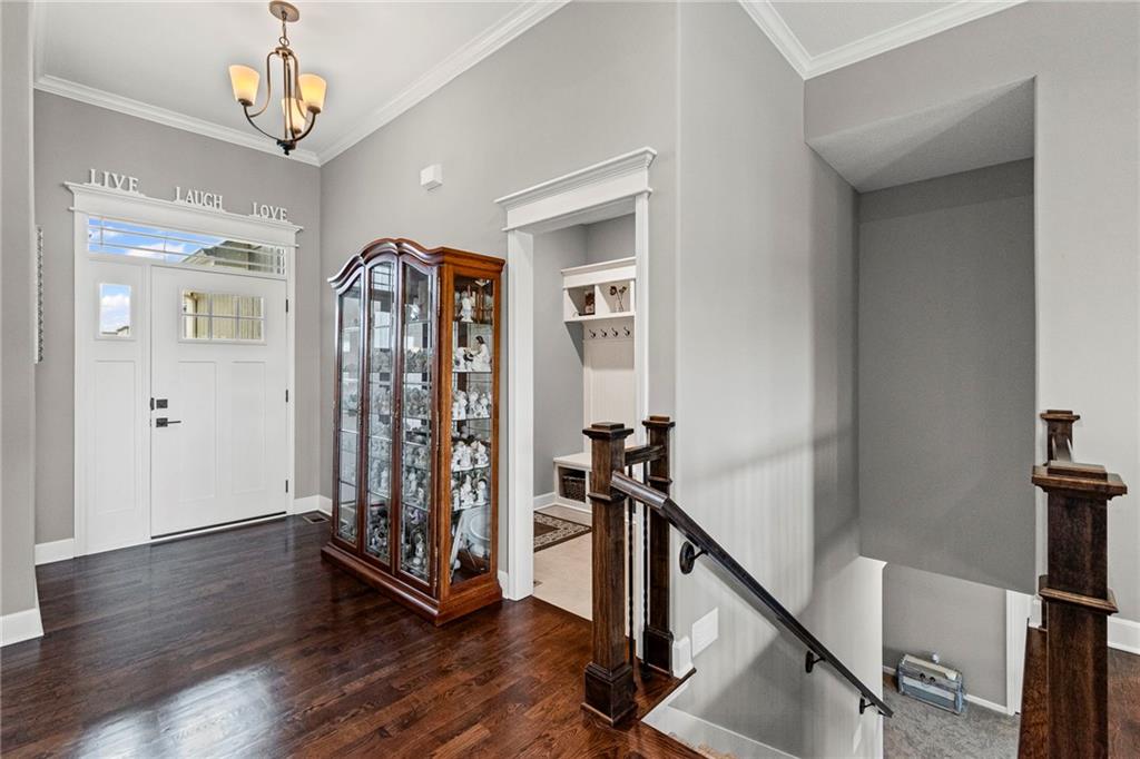 The 3 car garage has an extension on the 3rd stall for extra storage or a workbench area. Directly inside the garage entrance is a mudroom/drop zone.