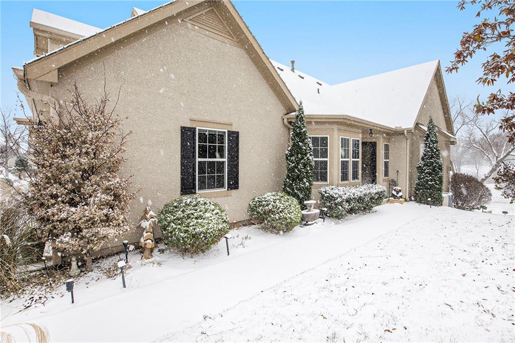 NEW to the market!! Welcome to effortless living in this beautifully maintained reverse 1.5-story townhouse perfectly positioned along the fairways of Staley Farms Golf Course. From the moment you step inside, you’ll appreciate the open, airy feel—sunlit living and dining spaces, gleaming hardwood floors, and soaring vaulted ceilings that create a warm and inviting atmosphere. The main-level primary suite offers true one-level living, with convenient access to the kitchen, an expanded pantry, and laundry room. Step onto the covered deck to enjoy serene, year-round views of the 4th hole (par 3) of the Staley Farms award-winning golf course—your own relaxing retreat. The spacious walkout lower level is ideal for guests or multi-use living, featuring an en-suite bedroom, rec room, office, and storage—including a dedicated workshop area. Additional accessible attic storage—with built-in flooring and easy staircase access from the garage—adds even more storage capacity. This home has been immaculately cared for with thoughtful landscaping and is completely move-in ready. Considerable additional landscaping has been added to give you lots of green and joy year round! You’ll be a part of a maintenance-provided community designed for convenience and leisure. Spend more time enjoying the exceptional Staley Farms amenities: zero-entry swimming pool, full gym, pickleball and tennis courts, sand volleyball, playground, indoor basketball court (also marked for pickleball), and scenic walking trails. HOA dues cover snow removal, lawn care, sprinklers, exterior building maintenance (including stucco, paint, and roof), and structure insurance—it’s perfect for Snow Birds—just lock it and leave it! Located minutes from KCI and downtown, this home offers the perfect blend of comfort, lifestyle, and accessibility. Come see why this is the one you’ve been waiting for!