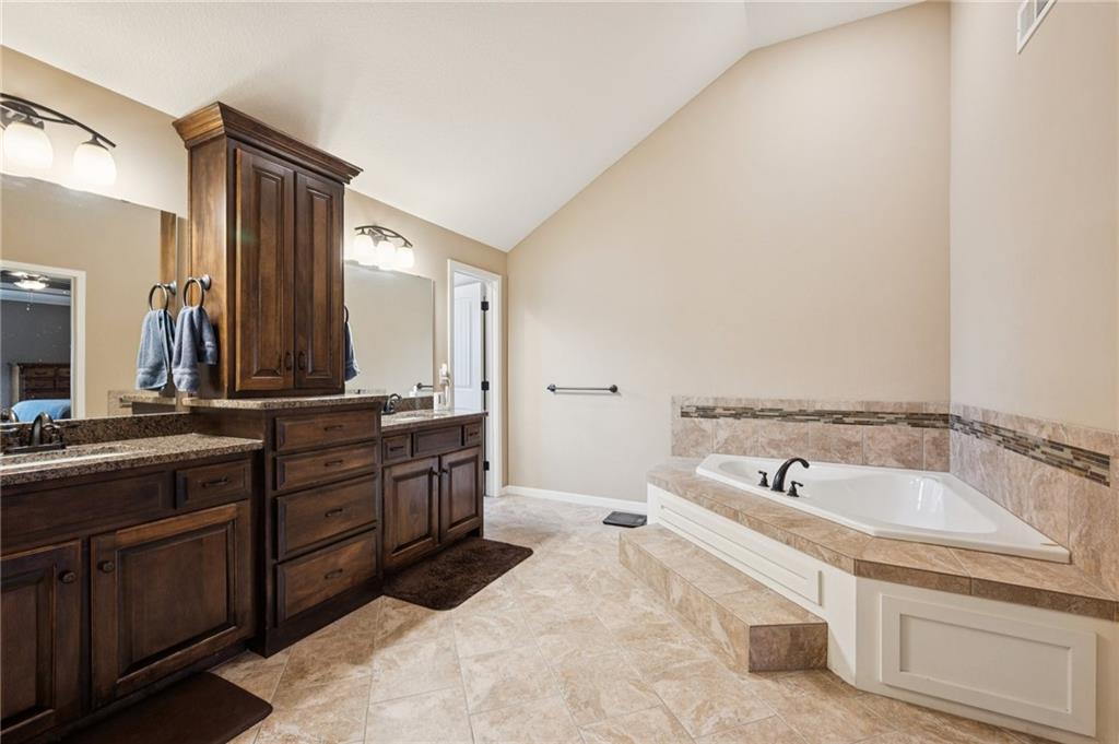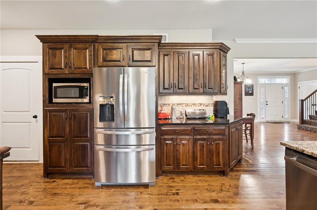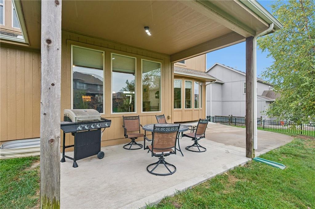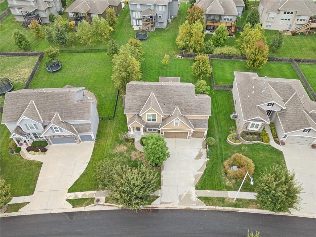 Well maintained 1 owner home in sought after Staley Hills. This is the expanded Lexington II by McFarland. Seller loves the neighborhood, their neighbors and its convenient location but no longer needs all the space and ready to downsize. You’ll love the openness of the main level with gleaming hardwood floors and abundance of windows allowing for lots of natural light! Formal dining area makes ideal office, additional living area or as the seller has done, the perfect place for your grand piano. The great room has a fireplace with beautiful stacked stone surround and curved wall of windows overlooking the backyard. Spacious kitchen is an entertainer’s dream with its large island including bar area for seating or the perfect buffet serving line, granite counters, abundance of cabinets, many with roll out shelves plus a HUGE walk-in pantry, stainless appliances featuring a gas range and a new dishwasher. The large eating area ceiling opens onto the covered patio which extends into the expanded patio the seller included when building the home. The primary suite features a raised ceiling with indirect lighting, LARGE walk-in closet, double vanity (granite) with a cabinet stack, tiled floor, corner whirlpool and separate shower room with oversize tiled shower. Secondary bedrooms each have a vaulted ceiling, ceiling fan and private bath access. Bedroom 2 has a walk-in closet. Lower level family room is great for movie nights and great hang out area for kids and adults of all ages! There’s a 5th bedroom with a walk-in closet but this room also makes a great private office, work out room, craft room or play room for all the kids’ toys! There’s also a 4th full bath in addition to unfinished storage areas. Enjoy the neighborhood pool, ponds and trails! Great location is close to stores, services, restaurants, entertainment and main roads for quick and easy access to KCI airport and downtown KC! Kids can walk to the highly rated emementary and high schools.