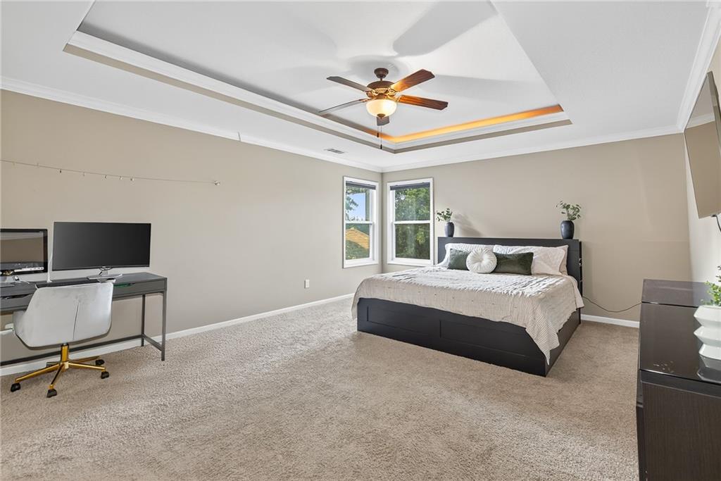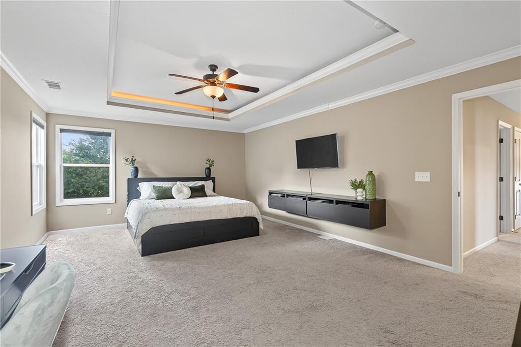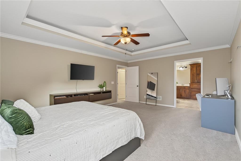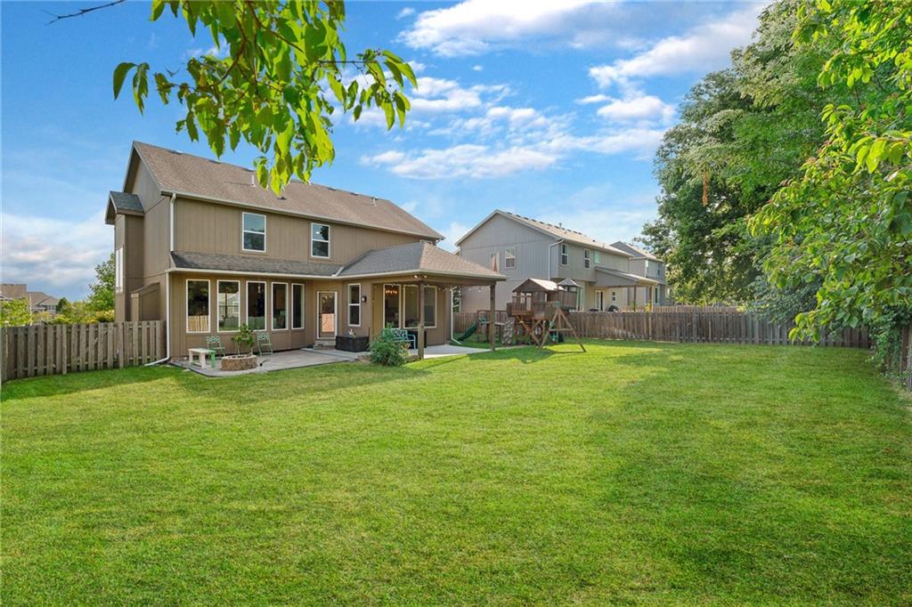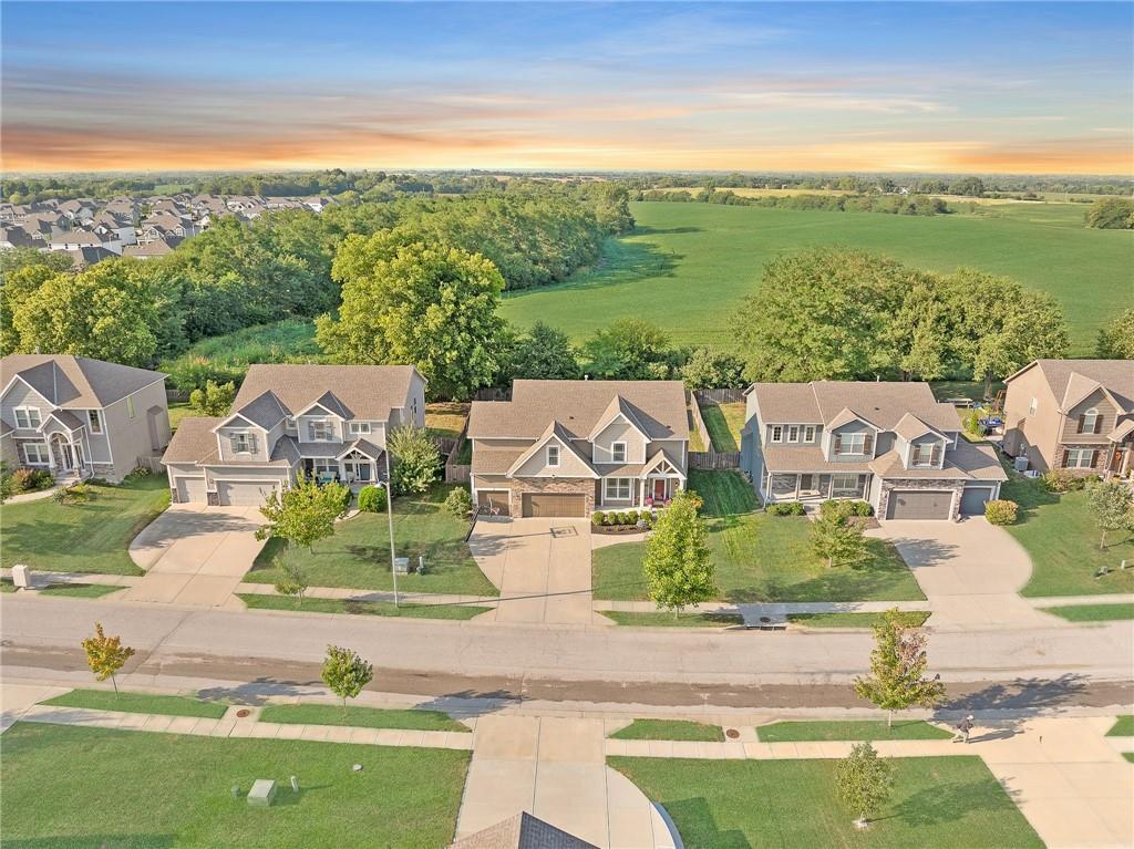 MUST SEE ** STALEY High School ! ** Only 8 years young with *PRIVATE Backyard!** Stunning, natural light-filled 4-bed home with a truly private, treed backyard that backs to open farmland greenspace — no rear neighbors. The covered patio, can easily be screened in, overlooks a patio and fire pit area perfect for year-round entertaining. The heart of the home is an entertainer’s kitchen with an extra-large island, abundant counter space, granite countertops, an extra-large coffee bar, and a HUGEEE walk-in pantry with slide-out shelving PLUS a drop zone right off the garage! Spacious rooms, wide hallways, and closets galore provide everyday comfort and organization. Upstairs laundry and a large primary suite with oversized closet and spa-like shower complete the thoughtful layout. Finishings feel like new & shoes have NEVER been worn inside! Includes a 3-car garage with added electrical hookups, built-in shelving + sprinkler system. Unfinished Basement includes an additional 1,064 sq ft to make it your own with hookups for future bathroom & plenty of space for another bedroom or two! Total sq ft including unfinished = 3860 sq ft. Community amenities include pool, park, and two stocked ponds. Did we mention the location!? 10-15 minutes from everything you need — schools, shopping, entertainment, airport, downtown and more!