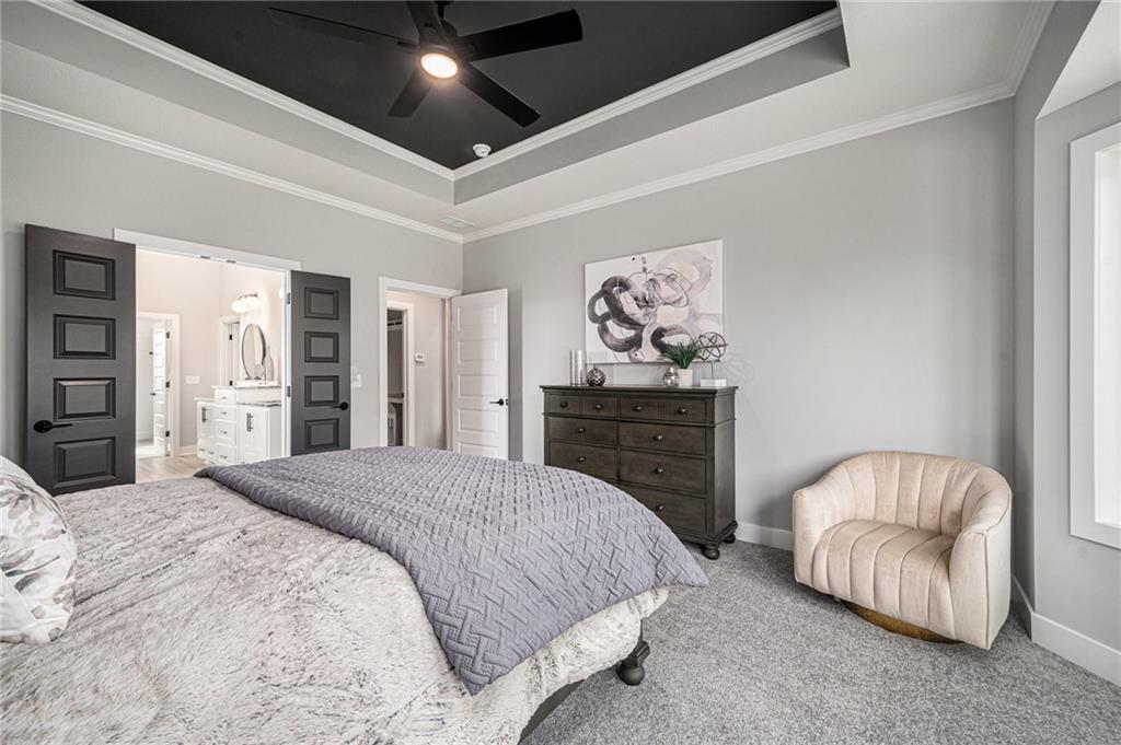 Welcome to the Haley 1.5 story plan by New Mark Homes! Primary Bedroom is located on the main floor, with 3 bedrooms on the upper level, each with its own private bath. There is also a loft on the second floor for additional living space. The kitchen has a prep sink in the pantry with base cabinets, second oven, and granite top. Check out this home that has plenty of sq ft as built or finish out the basement exactly the way you choose. Staley Farms is the destination spot for hundreds of home owners looking for quality of life in both recreation and education. From the golf course, zero entry pool, indoor basketball court, exercise rooms, tennis & volleyball courts, and of course Staley High, we have it all!