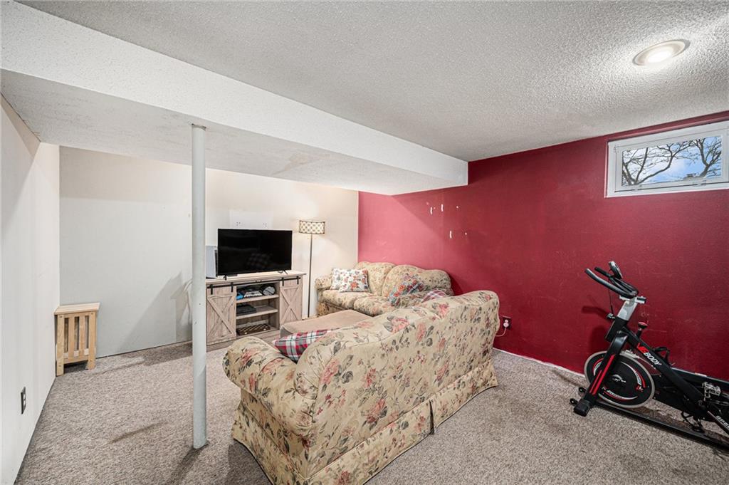The primary suite offers a vaulted ceiling, a double closet, and a private bathroom with a shower. Two additional bedrooms and a second full bath complete the main level. The finished lower level provides even more living space, ideal for a second family room, playroom, or home office, along with a dedicated laundry room for added convenience.