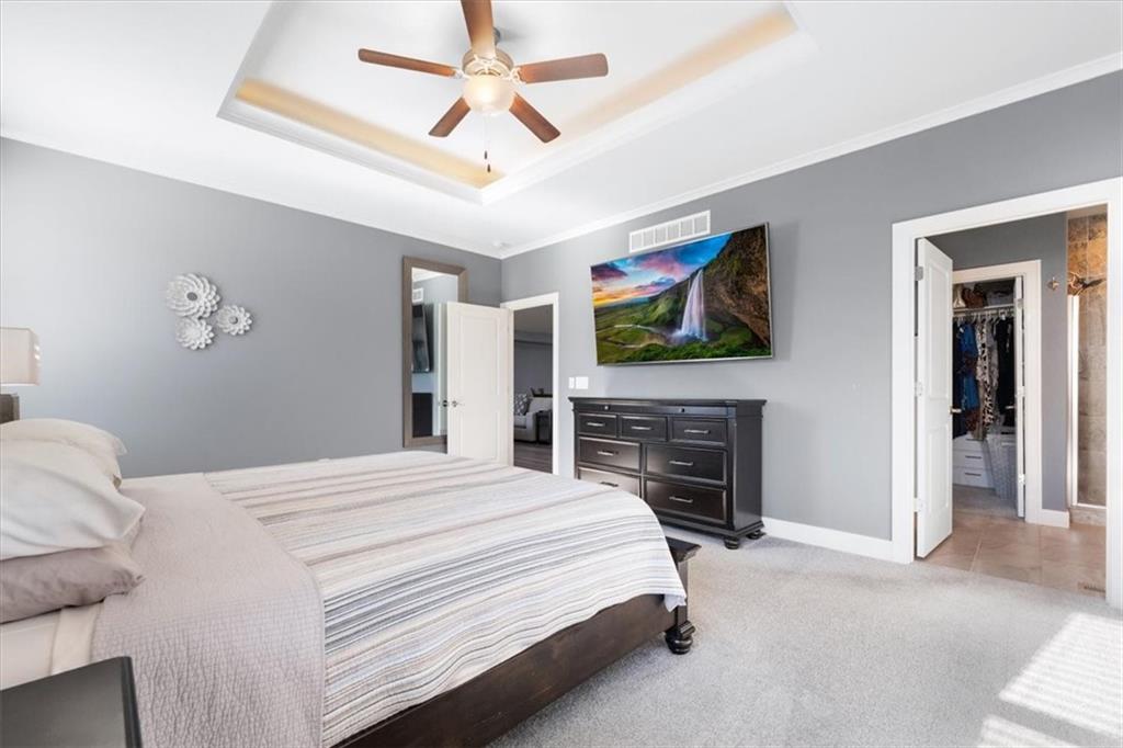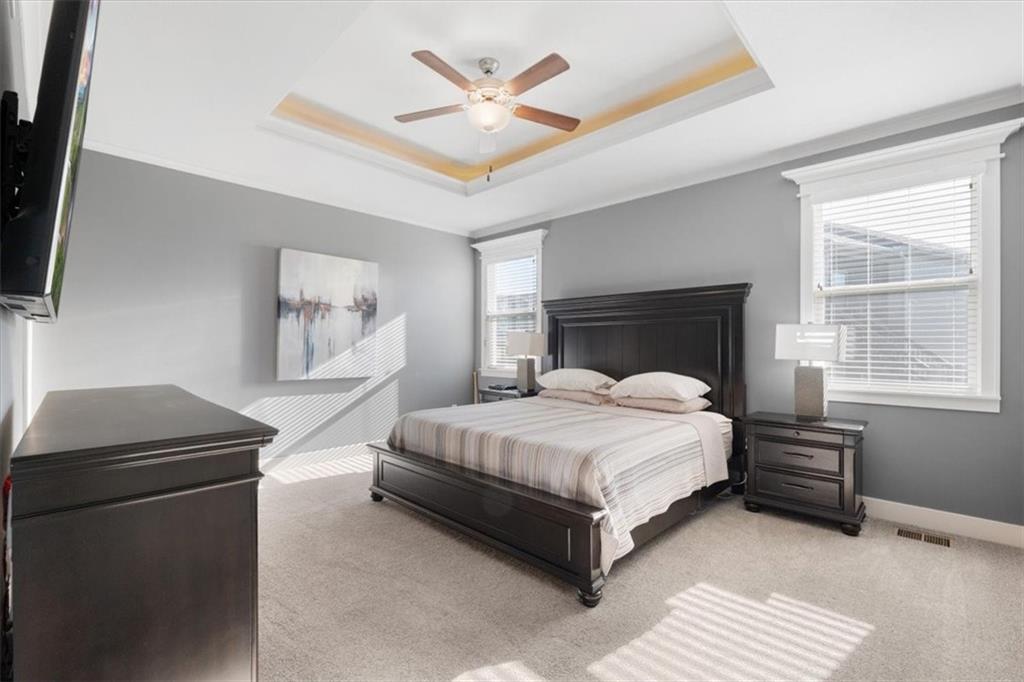 This beautiful home offers a simple lifestyle with a maintenance free exterior. It features a main level luxury suite, soaring vaulted ceilings, and a full-size basement for recreation. Not to mention, its custom bluetooth audio system throughout the home and a covered deck makes it perfect for entertaining family and friends. It is also centrally located with easy highway access.