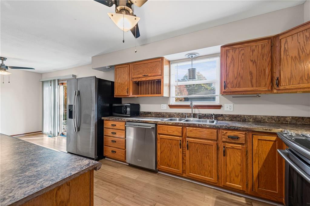 This beautifully maintained home is packed with upgrades inside and out! Step inside to an updated kitchen with custom cabinetry, a gas stove, and modern finishes—ideal for both everyday cooking and entertaining. New in 2025: A custom-built 12′ x 16′ shed featuring extra roof height for loft storage, solar lighting, windows on all sides, a full-size deck, and painted to match the home—perfect for hobbies, storage, or relaxing. Recent Updates (2022): Real bamboo flooring, stylish light fixtures and ceiling fans, premium vinyl siding, roof & gutters, and a new HVAC system—giving you peace of mind and modern comfort. Outside, enjoy a spacious tree-lined corner lot surrounded by a 6-foot privacy fence, offering a peaceful retreat with plenty of room for gatherings or outdoor relaxation. Conveniently located within walking distance of an exciting new development featuring T-Shotz, a variety of restaurants, a coffee and tea shop, a gym, and more! Located in the highly sought-after Staley School District, this home combines comfort, style, and an excellent location—making it the perfect place to call home!