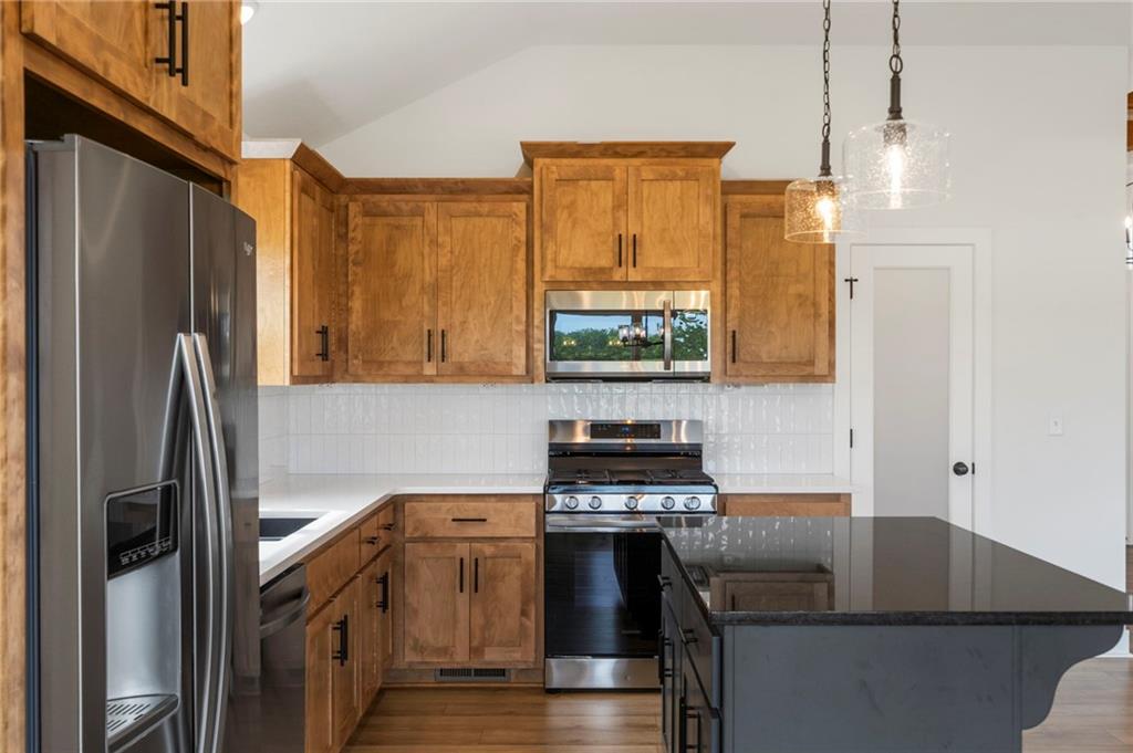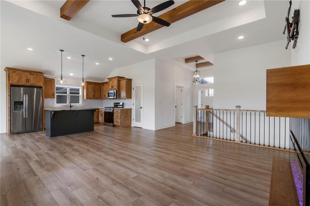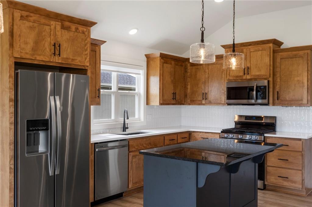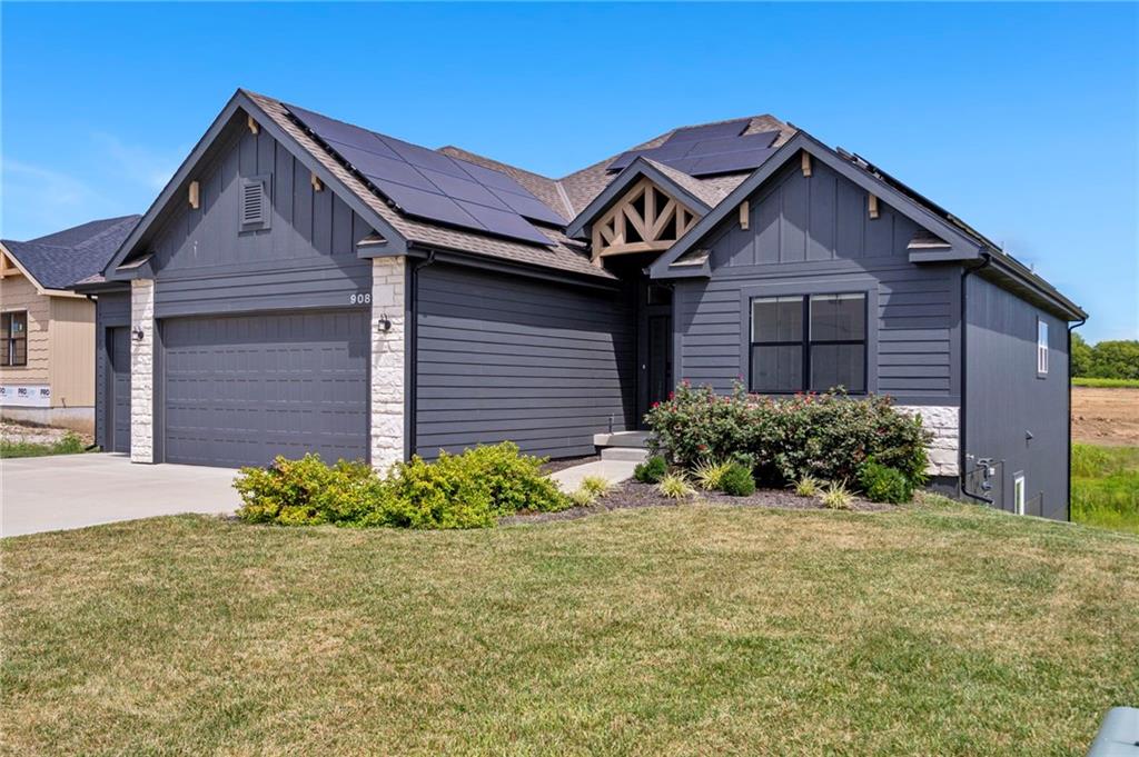 BETTER than NEW! Fall in LOVE with this Kerns built Azalea Gold home! SOLAR PANELS added by seller will save you tons on your electricity bills (Ask your agent for additional information on these provided with the listing!)! Walk in and admire the beautifully crafted large, open floor plan! Kitchen features granite island and spacious walk-in pantry! All appliances stay! Designer inspired great room features wood beam ceiling and electric color-changing fireplace! Main floor primary bedroom is a true retreat with access to deck, wood beam ceiling HUGE walk-in closet and ensuite bath! Enjoy the convenience of laundry connected to your primary closet! Venture downstairs to check out your additional, walkout family room with wet bar! Lower level also features 2 spacious bedrooms with walk-in closets and a full bath! Large storage area has double doors to the backyard– perfect to store your mower, create a workshop, etc! Custom fit Christmas lights stay with the house! Home wired for cameras! Located in one of the northland’s most desirable neighborhoods, this family friendly subdivision includes swimming pool, trails and playground! Hurry!! You’ll want to call this one HOME!