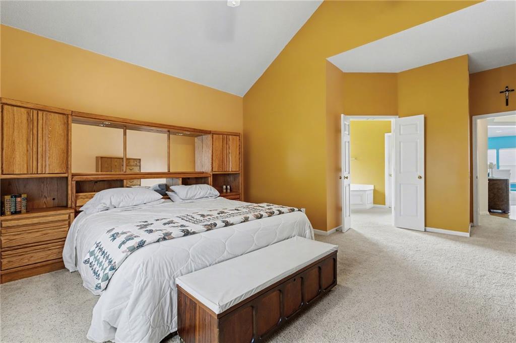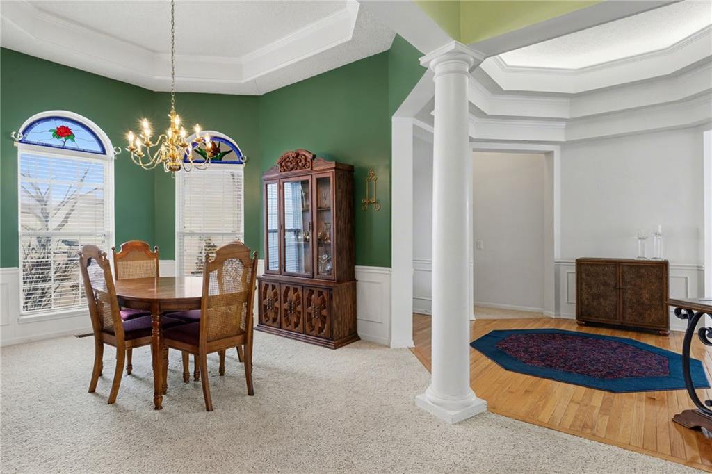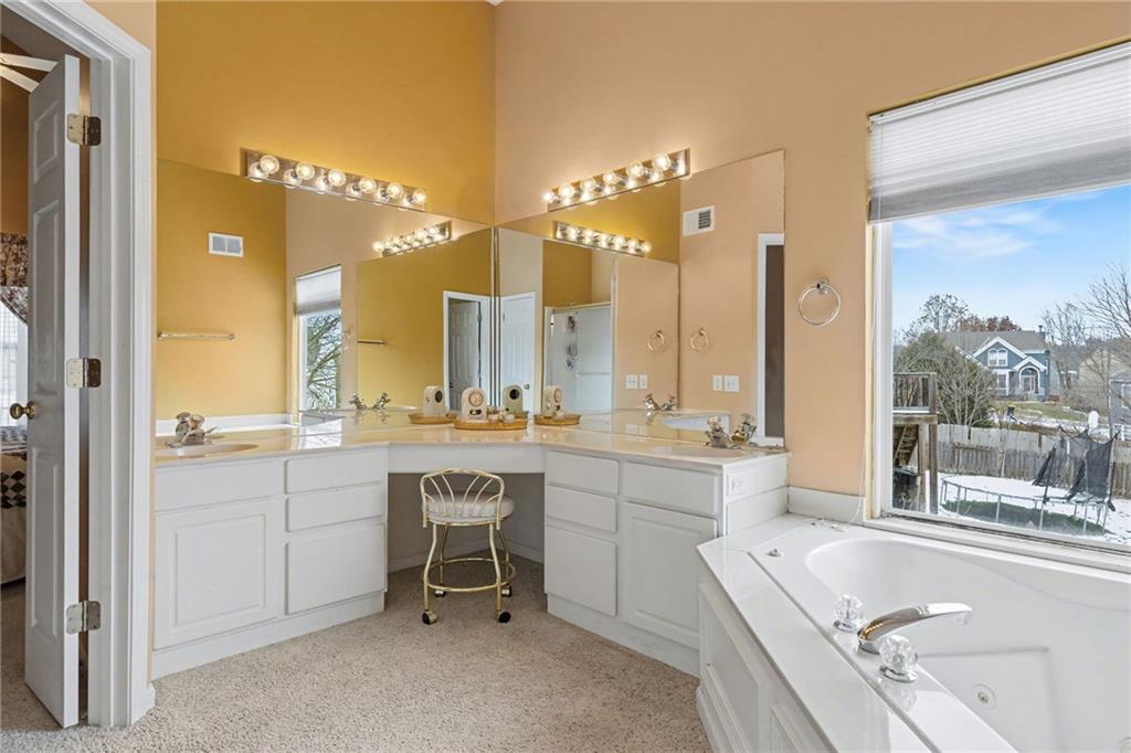 Step into the welcoming entryway and into a layout that just makes sense. The heart of the home is centered around the kitchen—complete with a formal dining room, designated eat-in area, and an abundance of cabinet space—making everyday living and entertaining effortless. The floor plan features two bedrooms on opposite sides of the home, with a bonus room perfectly positioned between them. This flexible space would make an ideal home office, TV room, playroom, or cozy reading retreat. The primary bedroom is exceptionally spacious, complete with a large ensuite featuring dual vanities, a corner jacuzzi tub, and a generous walk-in closet. Tall ceilings and main-floor laundry add to the ease and comfort of one-level living, and with the staircase tucked at the back of the home, the main floor feels open and uninterrupted. The lower level offers even more possibilities with a wide-open living area, multiple storage rooms, a full bathroom, and a workshop with its own exterior door—great for projects, hobbies, or easy backyard access. All this in a prime location with highly desirable schools and easy access to anywhere in the KC metro. This home delivers the space, convenience, and lifestyle you’ve been looking for.