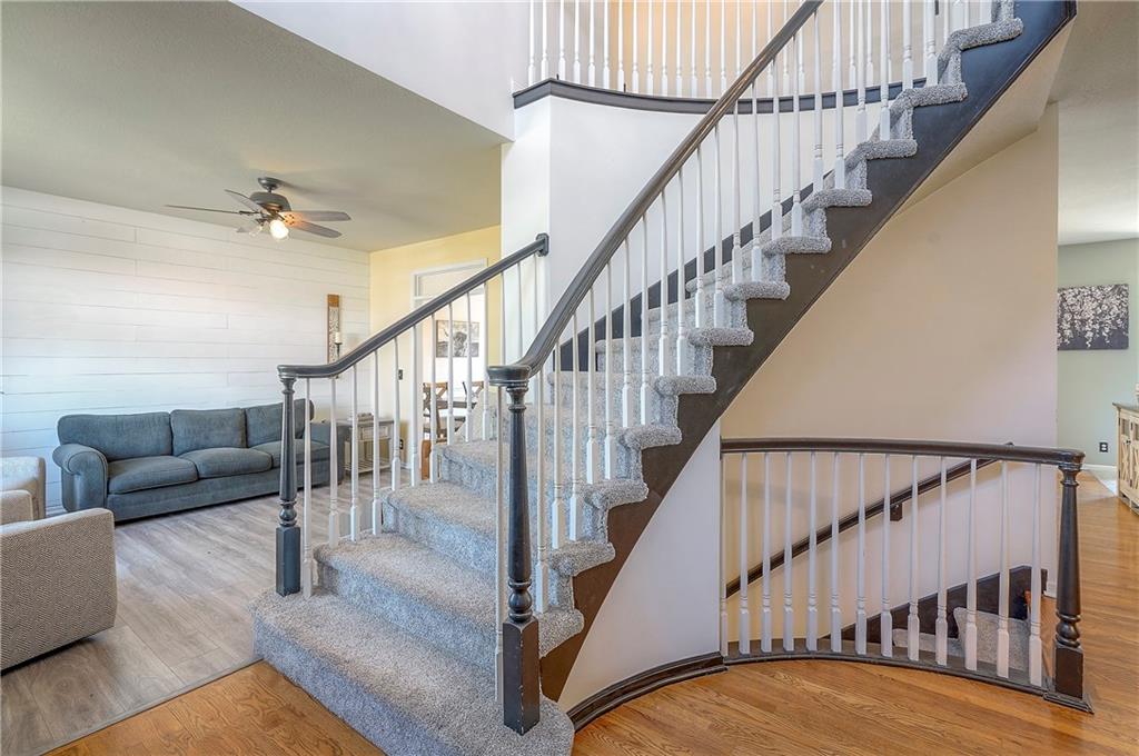PRICE REDUCED – $25,000 below recent appraisal and $25,000 of new windows installed since appraisal! WELCOME HOME to this stunning 5BR/4.1BA Willow Brooke home ready for your family! Two-story entry invites you into the home with CONVENIENT backpack station for easy organization. Flex room off the entry can be customized for your family as a sitting room, office space or however you imagine it. Formal dining room has beautiful NATURAL LIGHT and is perfect for holiday dinners and family gatherings. The SPACIOUS kitchen includes an ISLAND with counter seating, breakfast area with large windows and skylight to bring in even more light, plenty of counter and storage space and access to the DECK for additional dining and entertaining options. Main living room off the kitchen area offers a perfect gathering spot to spend time with family and friends in front of the FIREPLACE with even more views out to the backyard. Dedicated mudroom and half bath complete this level. Upstairs includes SPACIOUS master bedroom with ENSUITE bathroom, WALK-IN closet and laundry. Three secondary bedrooms with two full bathrooms complete this level. FINISHED WALK-OUT basement features a huge rec room, KITCHENETTE, SECOND laundry area, fifth bedroom and fourth full bathroom. This is a perfect space for entertaining as well as an optional “in-law suite” for long term guests! Large, FENCED backyard offers your family space to play and relax while enjoying the upcoming cooler weather with both the DECK and PATIO areas providing plenty of entertaining options. LOCATION close to area shops and restaurants, minutes from KCI Airport and easy freeway access. Don’t miss this opportunity!!