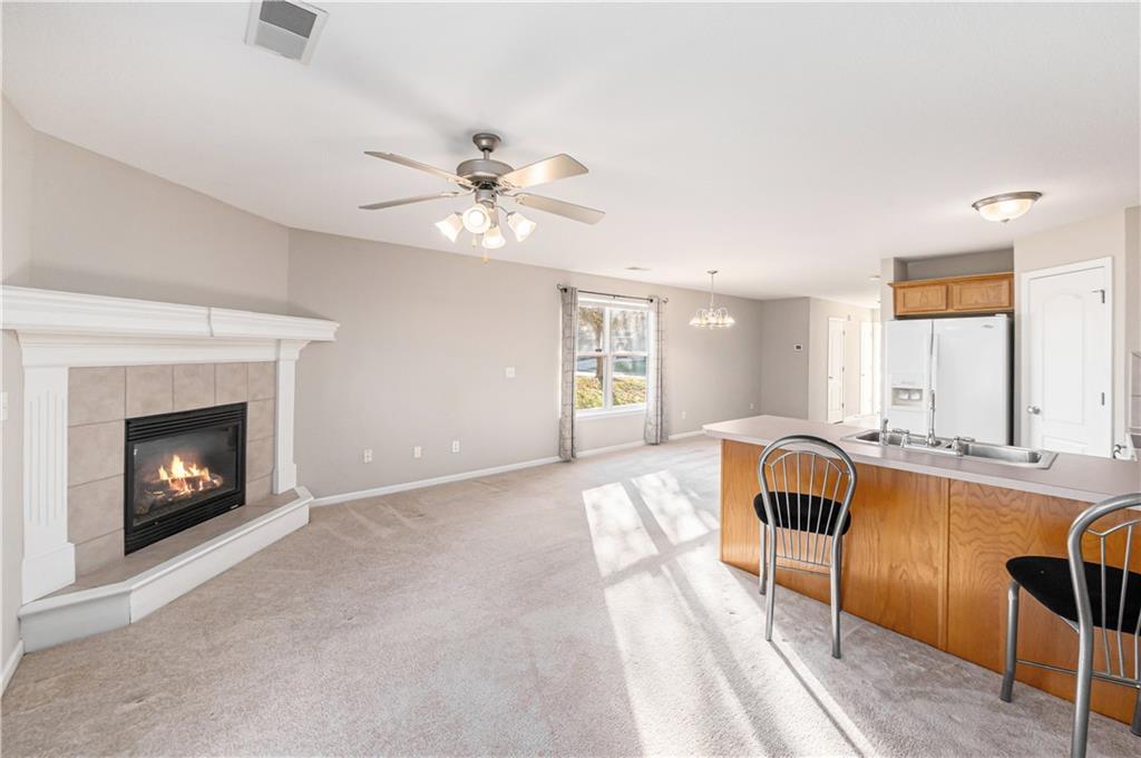 Location, location, and PRICE! Don’t miss this fabulous, maintenance-provided 3-bedroom, 2.5-bath townhouse perfectly positioned on a desirable corner lot with a one-car garage. Step inside to a welcoming main floor featuring a convenient half bath and an open-concept kitchen, dining, and living room. The kitchen offers a walk-in pantry, bartop seating for four, and includes all appliances,dishwasher, stove, refrigerator, and microwave,that remain with the home at closing. The living room is light and inviting with neutral paint, a ceiling fan, gas fireplace, and a slider leading to the private patio, ideal for relaxing or entertaining. Upstairs, you’ll find all three bedrooms. The spacious primary suite showcases a tray ceiling, new carpet, tray ceiling and ceiling fan. The ensuite bath offers both a jetted tub and a separate shower. Two additional bedrooms, a second full bathroom, and a dedicated laundry room (washer and dryer stay!) complete the upper level. Major updates add peace of mind, including a newer hot water heater, and new A/C. Situated just off 152 Highway and North Oak, with quick access to 435, 169, and I-35, this home offers unbeatable convenience for commuting, shopping, dining, and more.