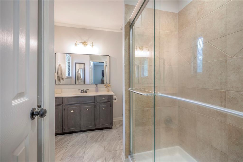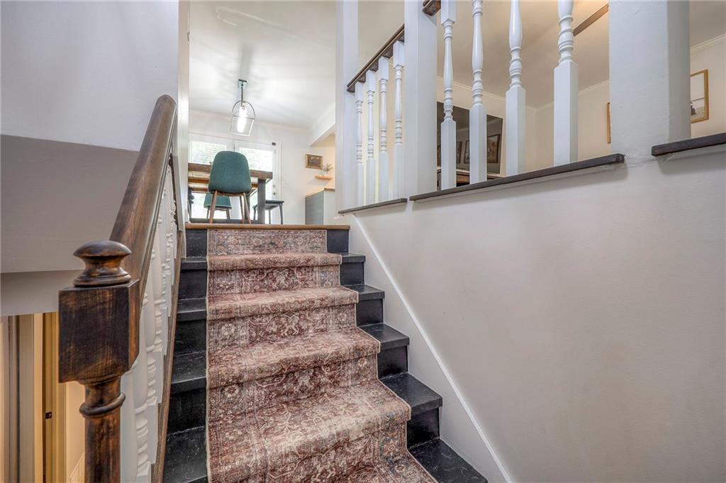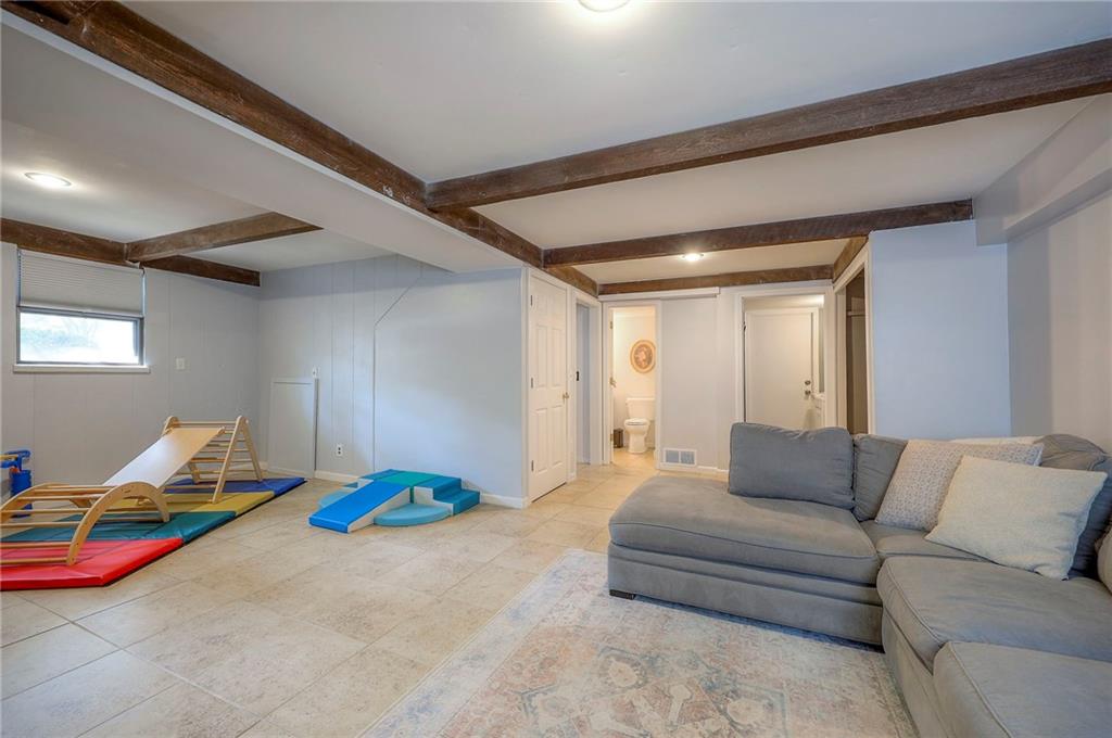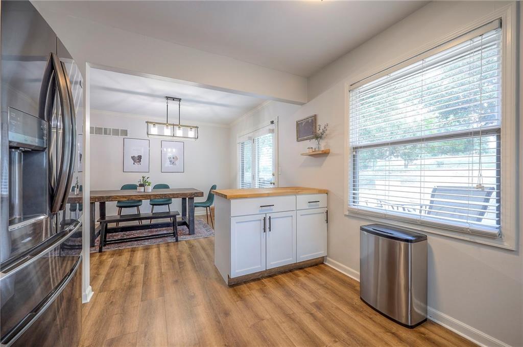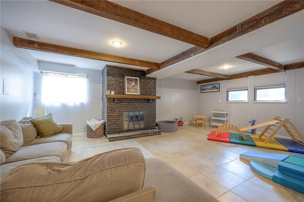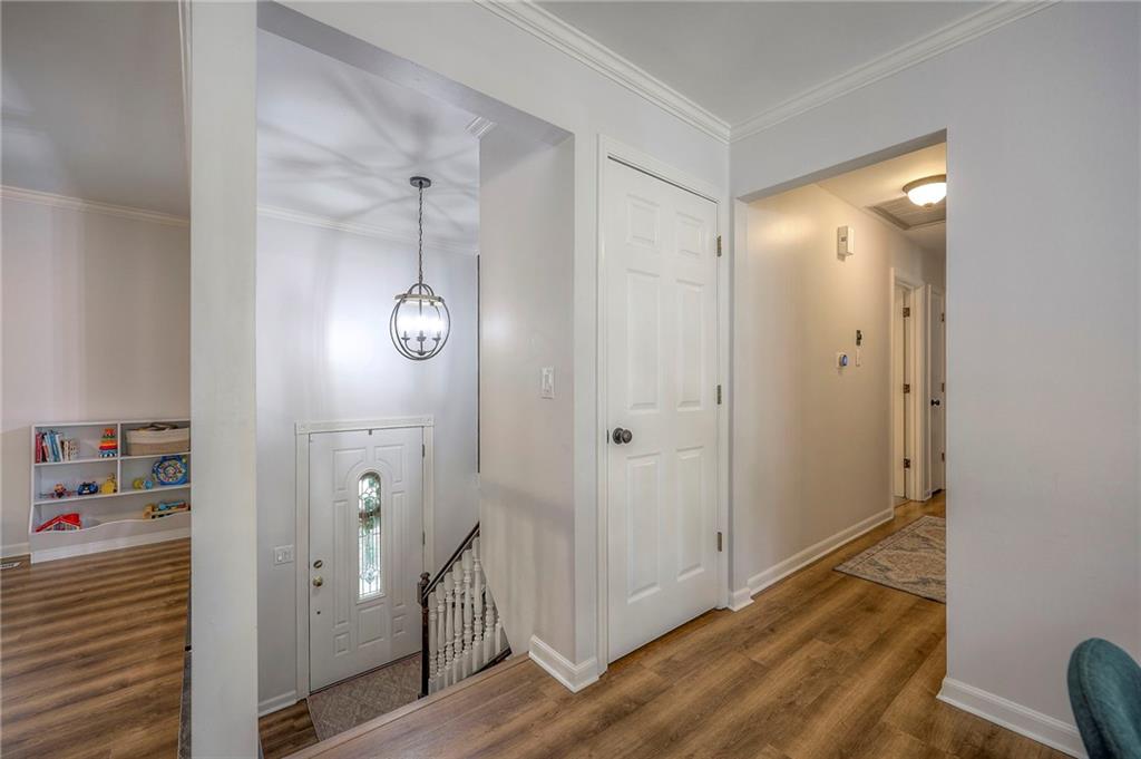 The finished lower level is highlighted by a classic brick fireplace with gas logs, a dedicated laundry area, and abundant storage. Additional highlights include a fenced backyard with mature trees, a Nest thermostat, an attic fan with timer, and a quiet tree-lined street. The home is also located within the desirable Staley High School attendance area, with convenient access to shopping, dining, and entertainment.