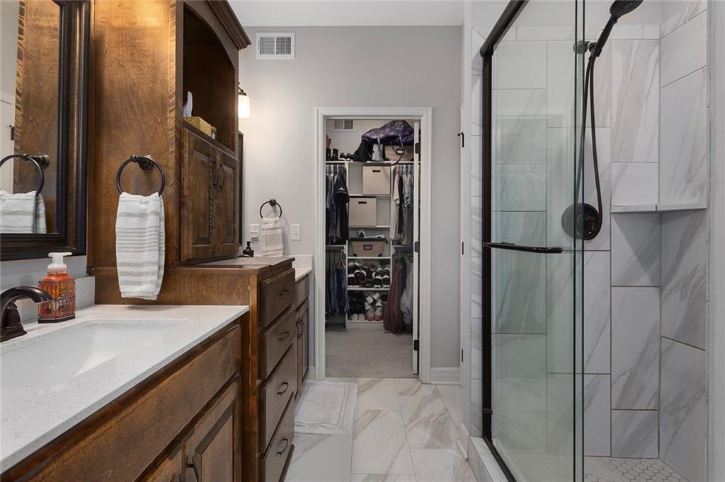 Better than NEW!! You have all the glam of new construction without having to worry about fencing, window treatments and landscaping. This home has been meticulously maintained. The basement is even partially finished. Seller has framed and sheet rocked 1 bedroom, bathroom and wet bar and spacious rec room. Plans are available. This home boasts a beautiful kitchen with so much counter space to the enhanced Master Suite with a bigger walk-in closet and large tile shower with additional upgrades in this home that include 9′ ingrade foundation walls. 2nd egress window in basement, under cabinet lighting, extended patio, hutch between primary bathroom sinks. This home is a STEAL and ready for your sweat equity.
