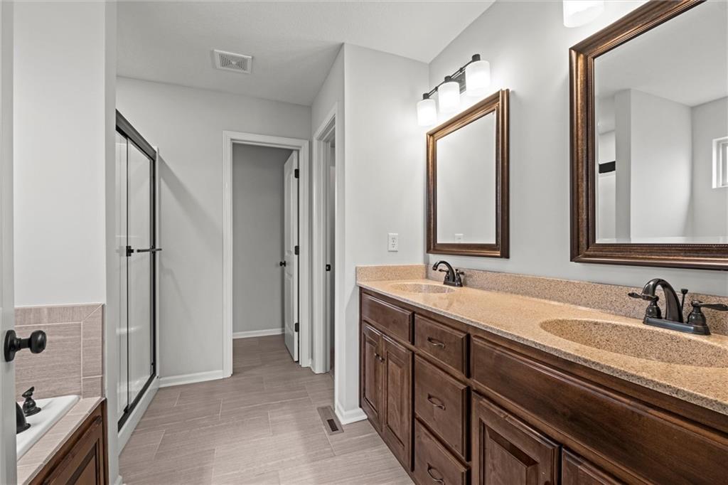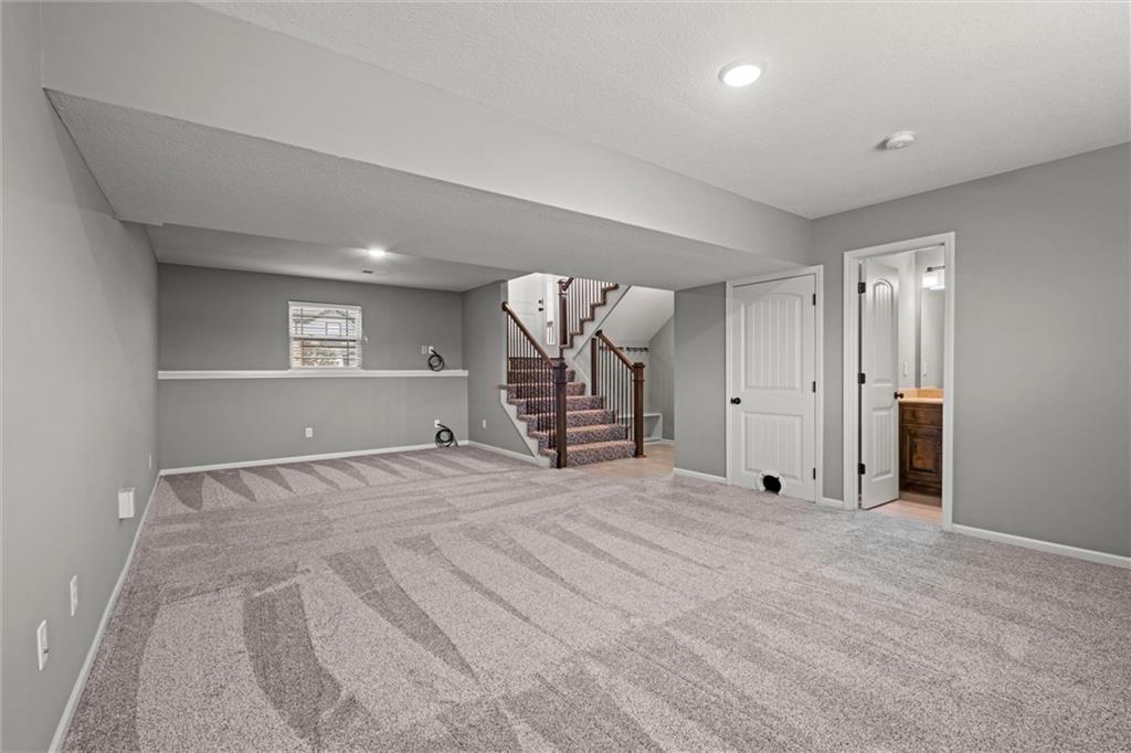 You’ll find a generous primary bedroom with ensuite complete with a whirlpool tub, double vanity, and a walk-in closet. You’ll also love the convenience of main floor laundry, just off the two additional bedrooms! Downstairs has a large family room ideal for gatherings and movie nights along with an additional full bathroom! Enjoy the neighborhood swimming pool play area and walking trails! Situated in a coveted Staley High School district and just minutes from major highways, shopping, and dining—this home offers the perfect blend of comfort, convenience, and style. Don’t miss your chance to make this beautiful move-in ready property your own!