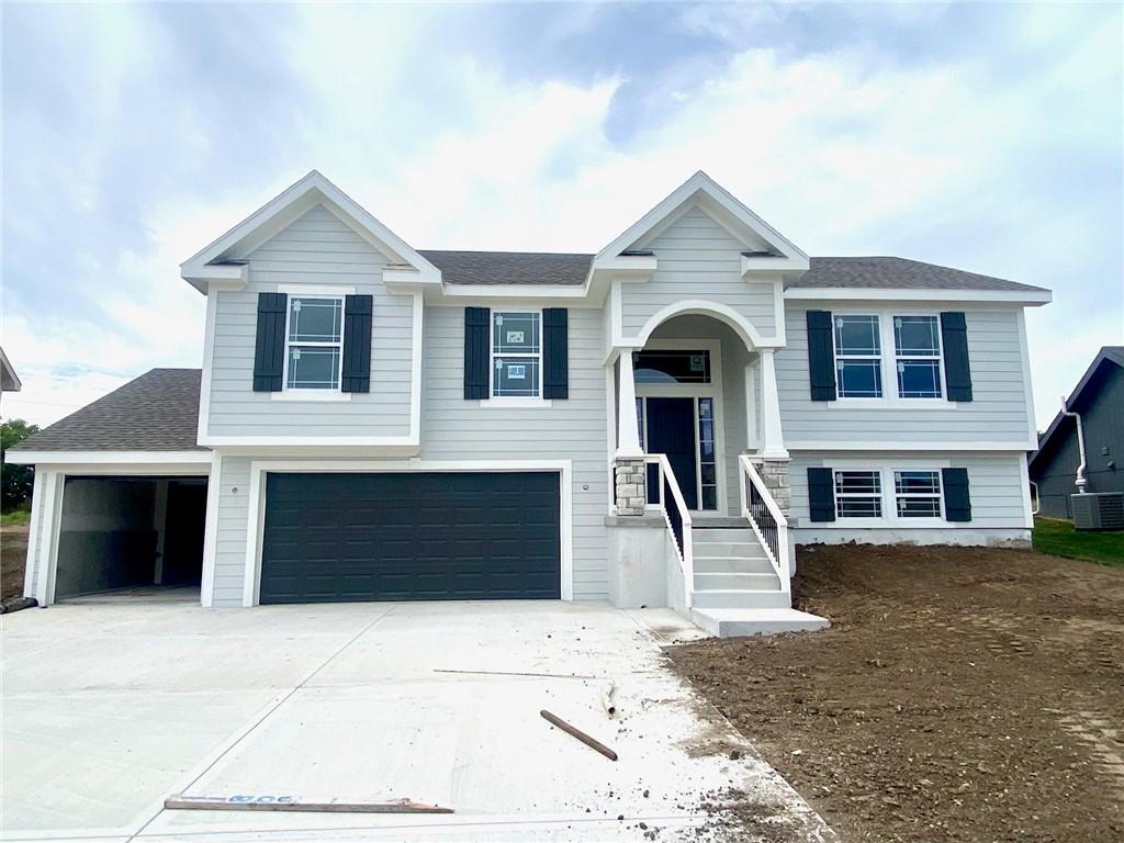 **LESS THAN 7 DAYS TO COMPLETION** The “PLATTE” by Robertson Construction! A 4 bedroom, 3 full bath, 3 car garage with a Finished Lower Level sitting on a large lot. This energy efficient home is built with 2×6 exterior walls, upgraded insulation package and a super high efficiency heating and cooling system. With an open Main Level this home offers a Gas Fireplace, Kitchen Island, Corner Pantry, Custom Built Cabinets with soft close doors, Solid Surface Countertops, Covered Deck, Dedicated Laundry Room, Master Suite with a Private Master Bath and Walk-in Closet along with 2 more bedrooms and 1 bath. The Lower Level has a Rec Room, Full Bath, 4th Bedroom and Drop Zone at Garage Entry. Located in the highly-rated NKC/Staley High School District and close to local amenities and outdoor recreation.