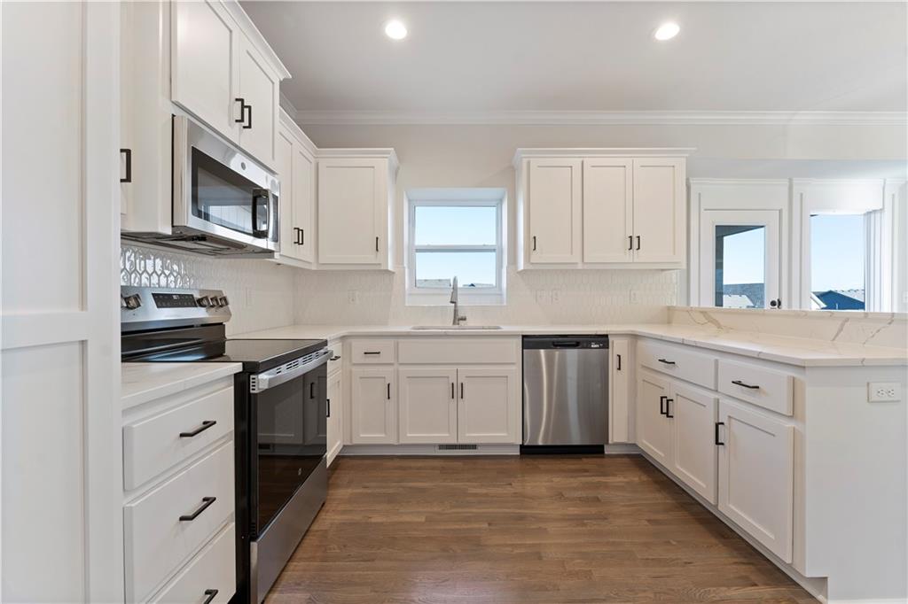 - Equipment Dishwasher, Disposal, Microwave, Electric Range, Stainless Steel Appliance(s)