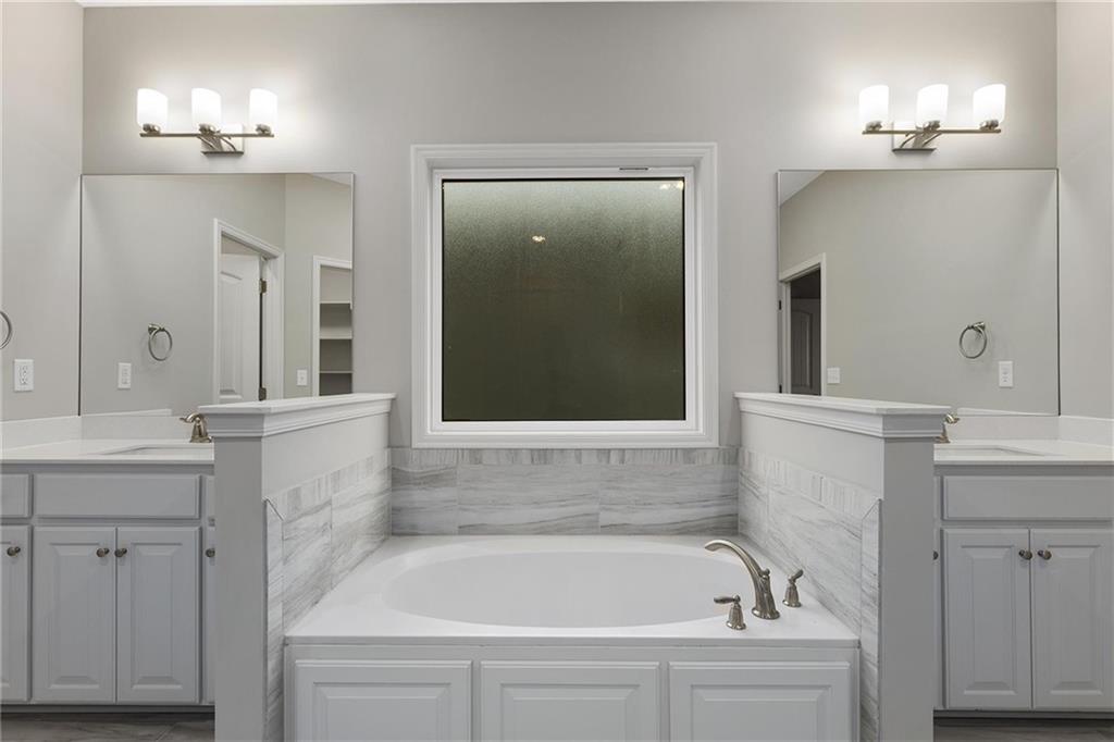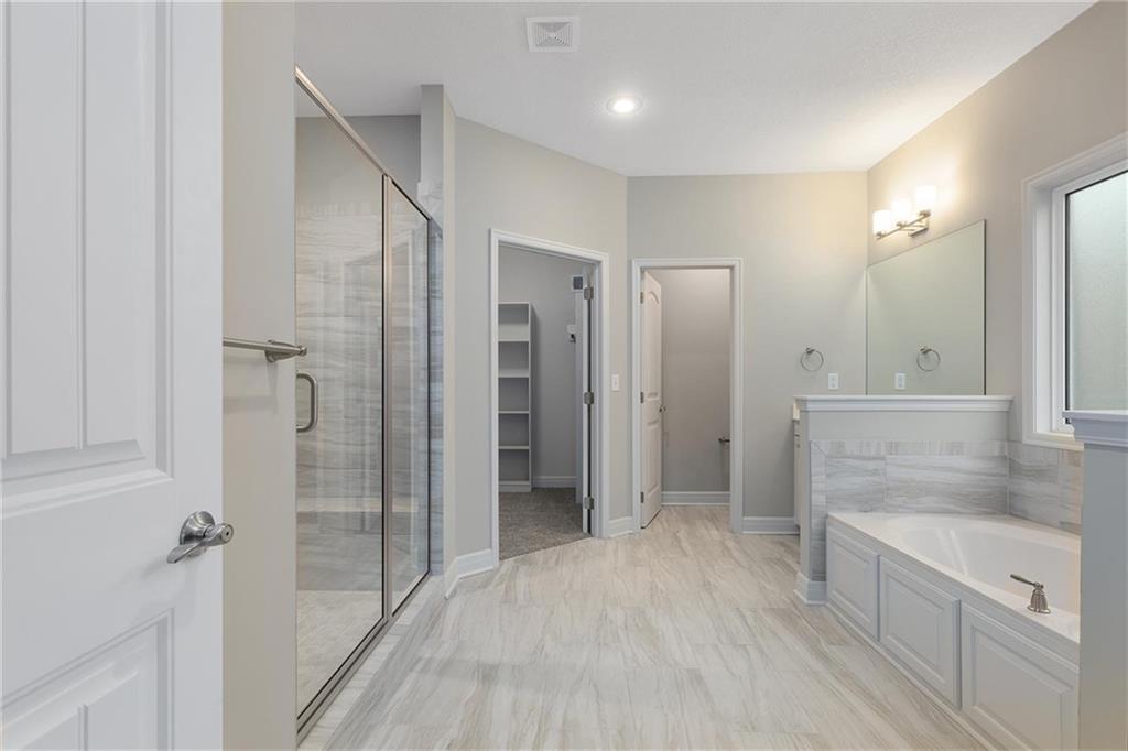 deck overlooking the backyard and adjacent farm. Relax in the master suite after a long day; the master bath and walk in