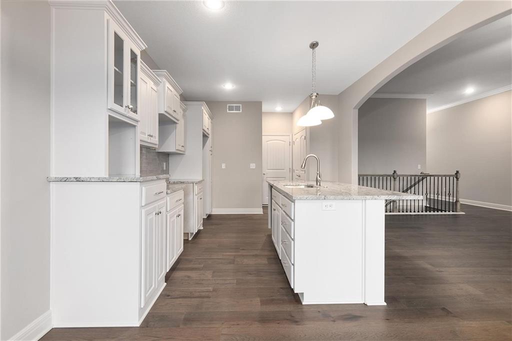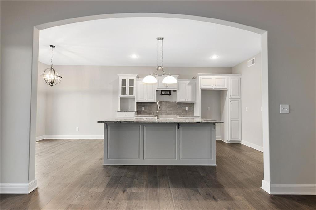 features upgrades that include gas plumbed in kitchen, under cabinet lighting in kitchen, recessed lights in living room,