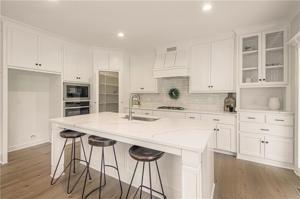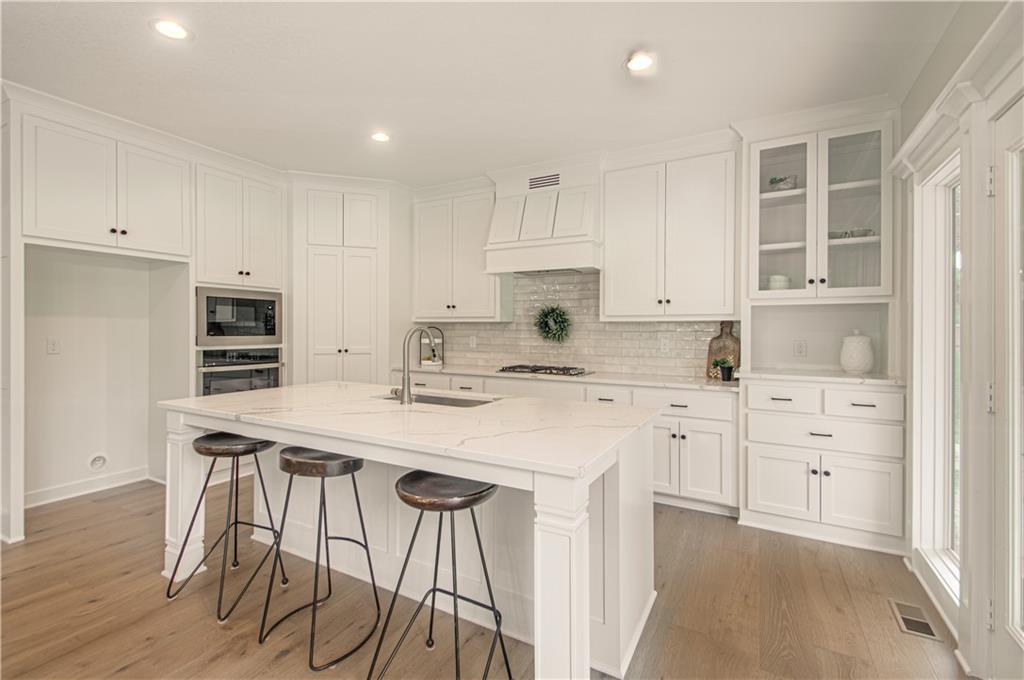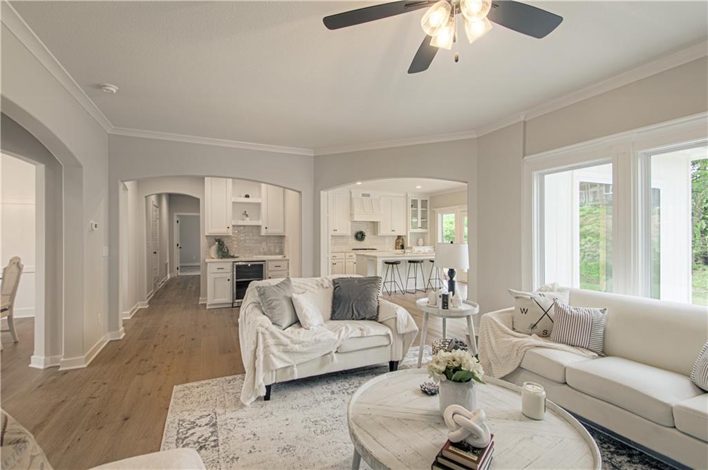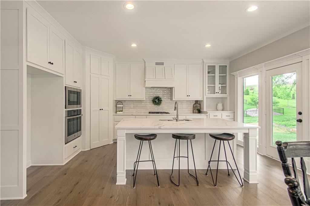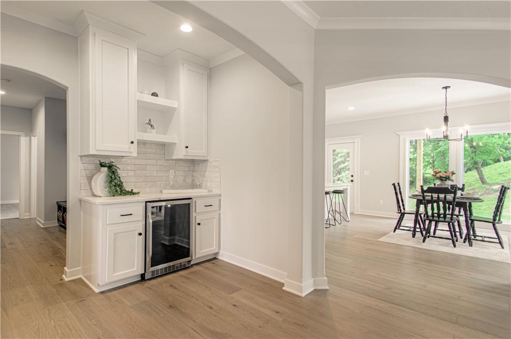 offers Rounded Arches, Custom Built Cabinets, HUGE Kitchen Island, Bonus Bar with beverage fridge, Floor to Ceiling