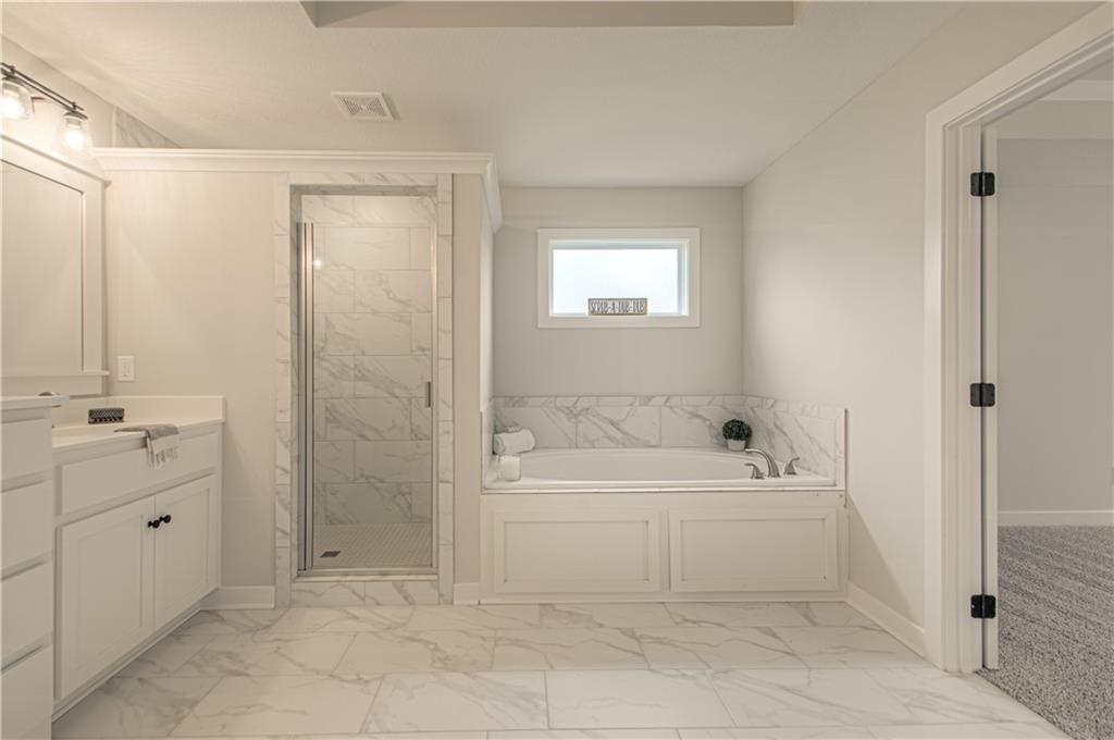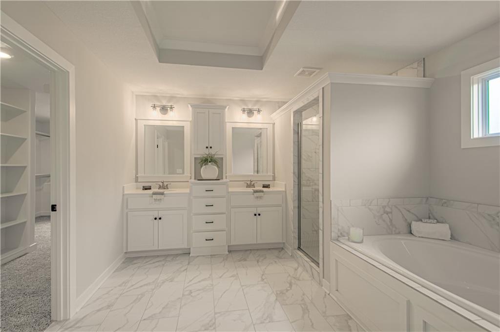 entertaining. The Second Level is just as impressive and features a Private and Expansive Primary Suite and Walk-in Closet that has access to the Laundry Room. The Primary Bath is luxurious with an oversized Tub and Walk-in Shower with tile walls. There are 3 more bedrooms and 2 more baths on this level. Beautiful Staircase overlooks the Front Entry.