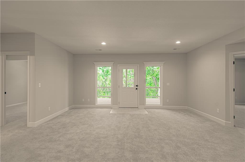 **ASK ABOUT BUILDER RATE BUYDOWN INCENTIVE**COMPLETED AND MOVE-IN READY**The “NOAH” by Robertson Construction! Sitting on a Premium TREED LOT and BACKING TO TREES this Gorgeous Reverse 1.5-Story offers 2822 sq. ft. and beautiful detail throughout. Floor to Ceiling windows overlook the back yard with a peaceful view of nature. An impressive Open Main Level offers a Corner Stone Fireplace, Real Hardwood Floors, Private Master Suite, Luxurious Master Bath with a Walk-in Shower, Huge Soaker Tub and access to the Laundry Room complete with a utility sink. Also on this level is Bedroom 2 (makes a great home office) and 2nd Full Bath. The gourmet Kitchen has Custom Built Cabinets, UPGRADED Quartz Countertops and 5 burner Gas Cooktop, separate Electric Oven, Black Composite Sink, Island and a Walk-in Pantry. There are 2 OVERSIZED DECKS. The Top Deck has easy access from both the Breakfast Room and Master Suite. The Lower Deck, at the Walkout offers another great view with steps leading to the back yard. The Finished Lower Level WALKOUT offers more Floor to Ceiling Windows, WET BAR with Beverage Fridge, 2 more Bedrooms, 2 Baths, Family Room and a GENEROUS AMOUNT OF STORAGE in 2 STORAGE ROOMS. CUSTOM GARAGE DOORS. Subdivision amenities include a pool, clubhouse, tennis/basketball courts and play area. Located in the highly-rated NKC/Staley High School district.