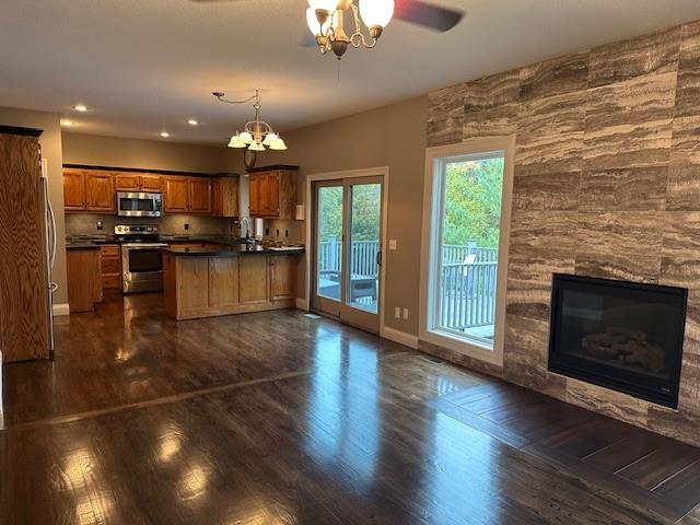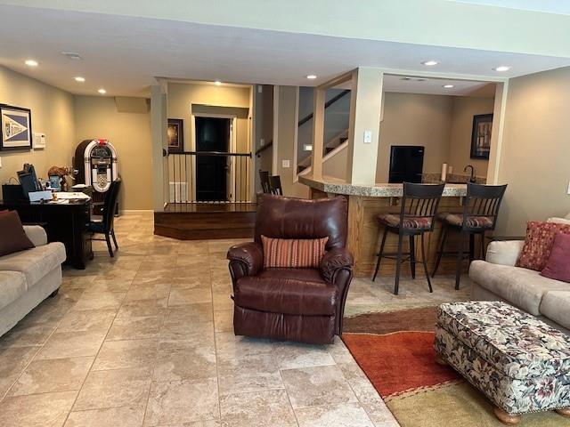 This is a Must See house in Essex Place! Beautiful open floorpan on a wonderful treed lot. Open floorpan with hardwoods throughout the entire main level. Main level laundry. Primary bedroom includes a remodeled walk in tile shower, tub and oversized walk in Primary closet. Newer roof (2 years) and Newer HVAC (2 years) !! The full finished basement in this house includes a full size wet bar with granite countertop and tile floor. Lower level walk out bedroom, 3/4 bath including a large walk in shower, and living area that also includes an electric fireplace. Walk out lower level to Oversized patio and gas grill area, ideal for entertaining. This house sits on a beautiful lot where you can watch the wildlife from the oversized Trex Deck! It also includes a utility garage for lawnmower and tool storage!! Houses for sale in Essex are a rare occurrence so hurry and don’t miss out !!