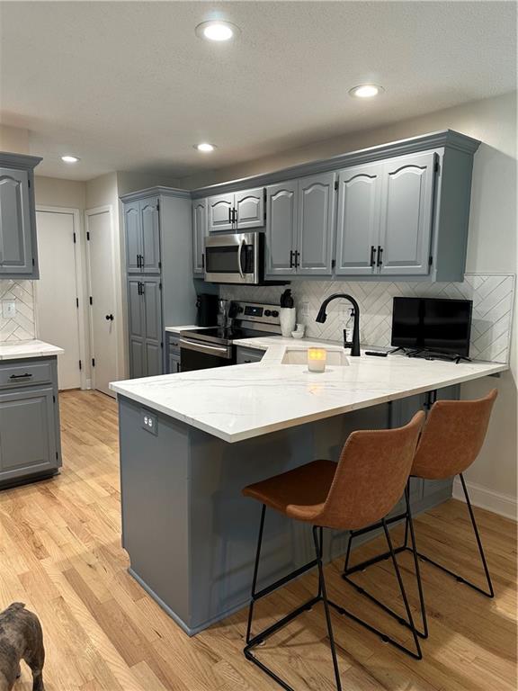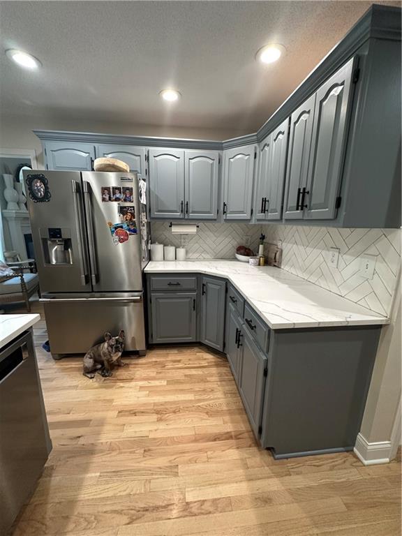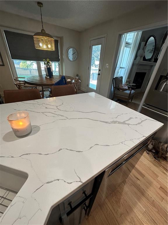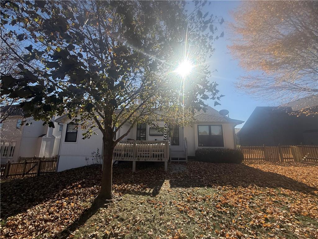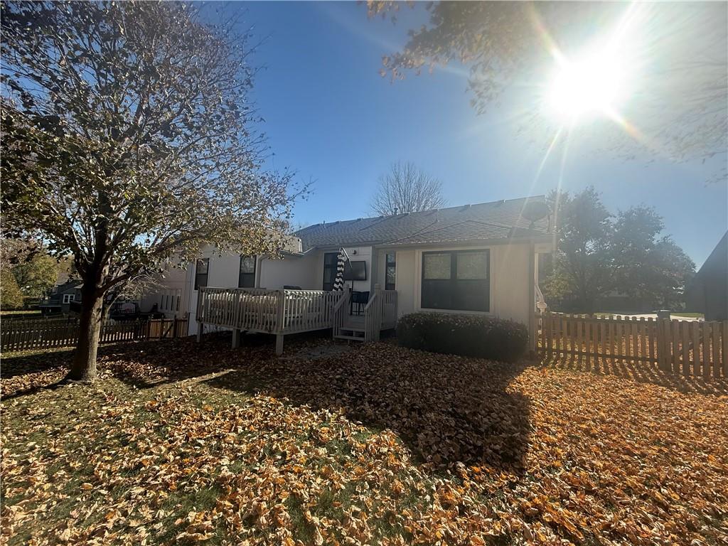 Welcome Home! This beautifully updated ranch is truly turnkey, offering modern style and thoughtful upgrades throughout. The exterior was freshly repainted, complemented by new landscaping, windows, and interior/exterior trim. Step inside to an expansive living room featuring hardwood floors, a gas fireplace with marble surround, and a custom staircase that adds a touch of elegance. The kitchen is a showstopper with quartz countertops, a white chevron tile backsplash, painted cabinetry with sleek black pulls, and stainless steel appliances. A convenient laundry room is located just off the kitchen. The primary suite on the main level boasts a vaulted ceiling and a modern ceiling fan. The ensuite bathroom was recently remodeled and features a double vanity with quartz countertops, a free-standing soaking tub, new tile flooring, updated plumbing fixtures, and a glass shower door. The hall bath also shines with a new vanity, quartz countertop, and new tile floor. Downstairs, the partially finished basement offers LVP flooring and endless possibilities. The unfinished area is stubbed for a future bath and provides ample storage or space to expand. Step outside to the deck off the kitchen, a perfect spot to relax and unwind. A flagstone paver walkway and new fence pickets complete the backyard updates. Enjoy all the amenities this vibrant community has to offer, including two pools, walking trails, sport courts, and two playgrounds. Conveniently located off I-35, close to shopping, restaurants, and within an award-winning high school district.