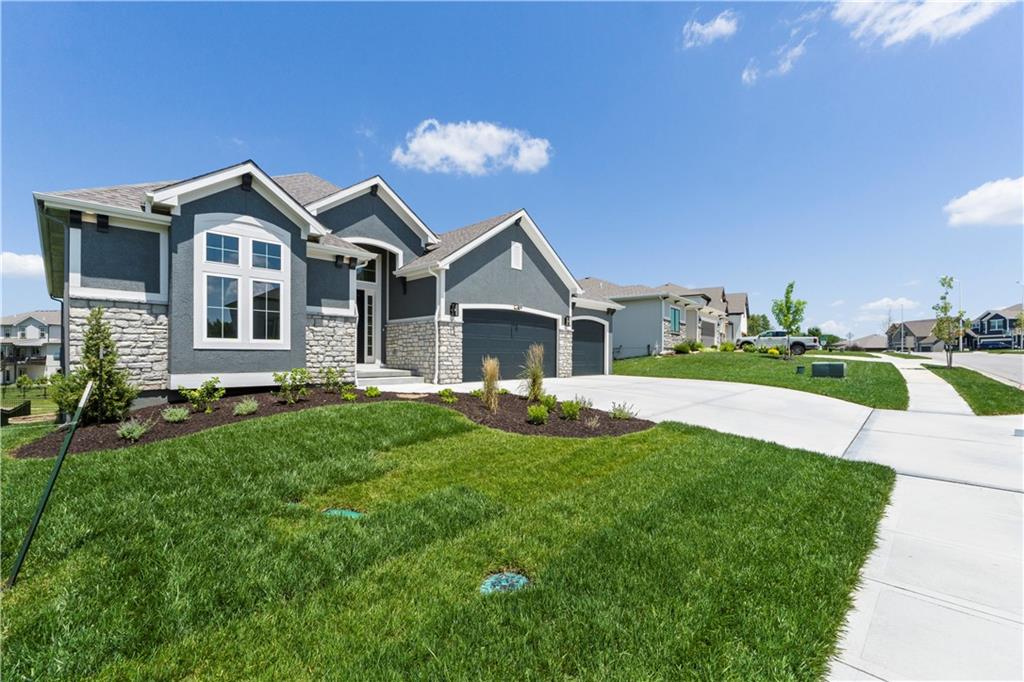 Welcome to this exceptional Reverse 1.5 Story home in the final phase of Benson Place Landing, perfectly situated on a cul-de-sac walkout lot that backs to greenspace and a scenic walking trail. Just a short walk from one of the neighborhood’s two community pools, this home offers an ideal combination of location, design, and lifestyle. The open-concept layout features 4 bedrooms and 3.5 bathrooms, with upscale finishes and thoughtful craftsmanship throughout. The great room showcases hardwood flooring and a gas fireplace, seamlessly connecting to the kitchen and dining area for effortless entertaining and everyday living. The finished walkout lower level includes a spacious family room with a wet bar and beverage fridge, providing additional living and gathering space. In addition to the impressive standard features, this home also includes an upgraded kitchen island, composite decking with all-metal handrails, all bathrooms have tile showers, and a convenient tub sink in the garage. The 3-car garage offers generous storage, and the 7-zone lawn irrigation system ensures a well-maintained yard. Located within a vibrant community and top-rated school district, with easy access to highways, trails, parks, and shopping, this move-in ready home is a rare opportunity in one of the Northland’s most desirable neighborhoods.